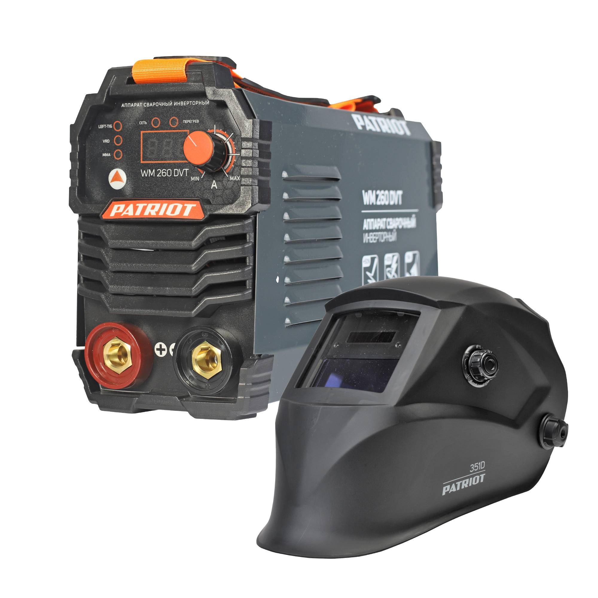 20-260 А, ПВ 70 %, ММА, TIG, 1.6-6 мм электрод, горячий старт, форсаж дуги, VRD, 140-240 В+маска сварщика 351 D