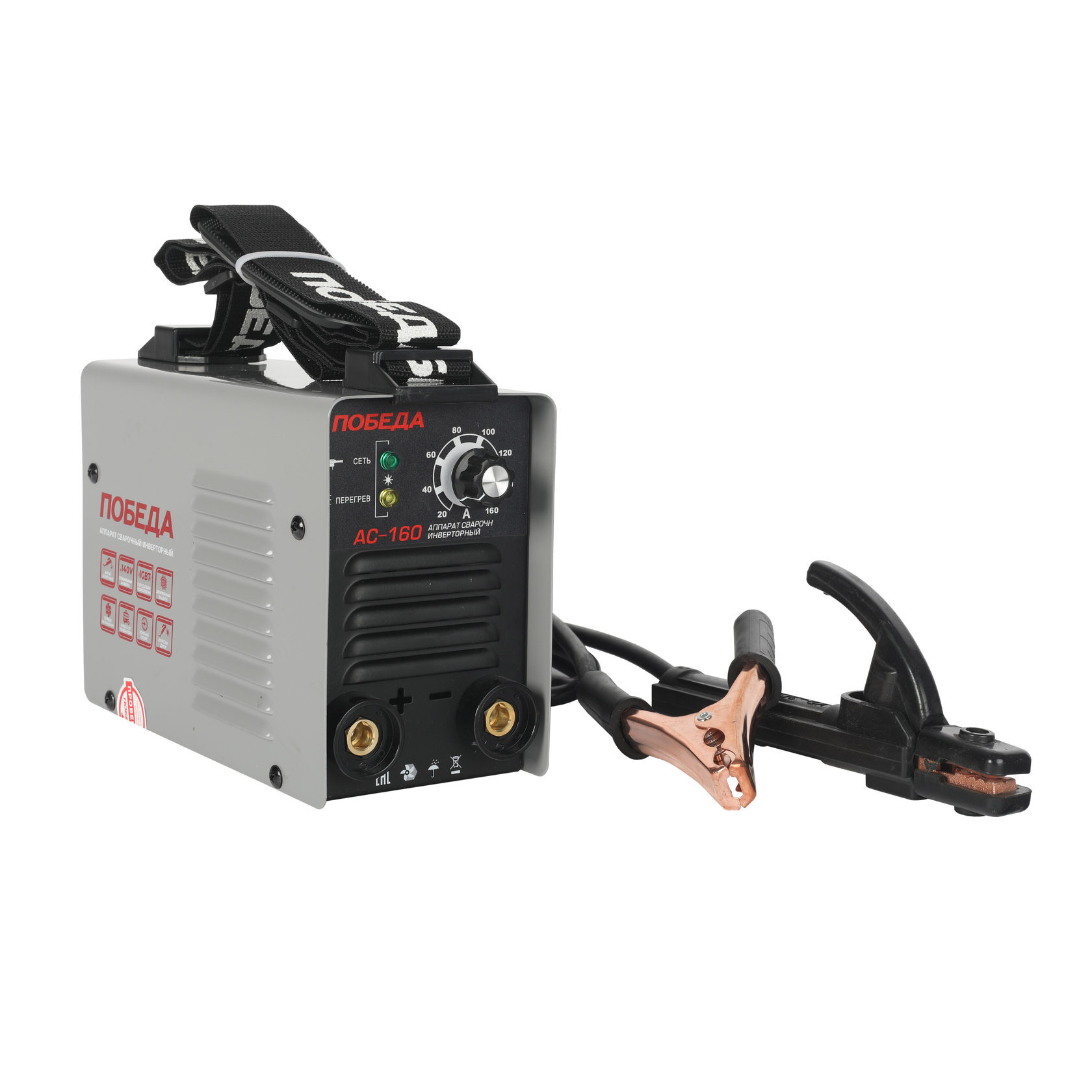 сварочный ток 20-160 А, ПВ при макс.токе 60 %, режим сварки ММА, 1.6-4 мм электрод, потребляемая мощность 3.9 кВА, защита от перегрузок, антизалипание, форсаж дуги, горячий старт