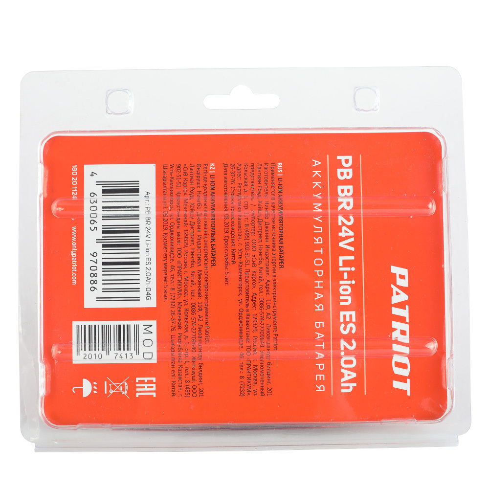 Батарея аккумуляторная Li-ion для шуруповертов Patriot. Емкость аккумулятора: 2,0 Ач, напряжение: 24В.