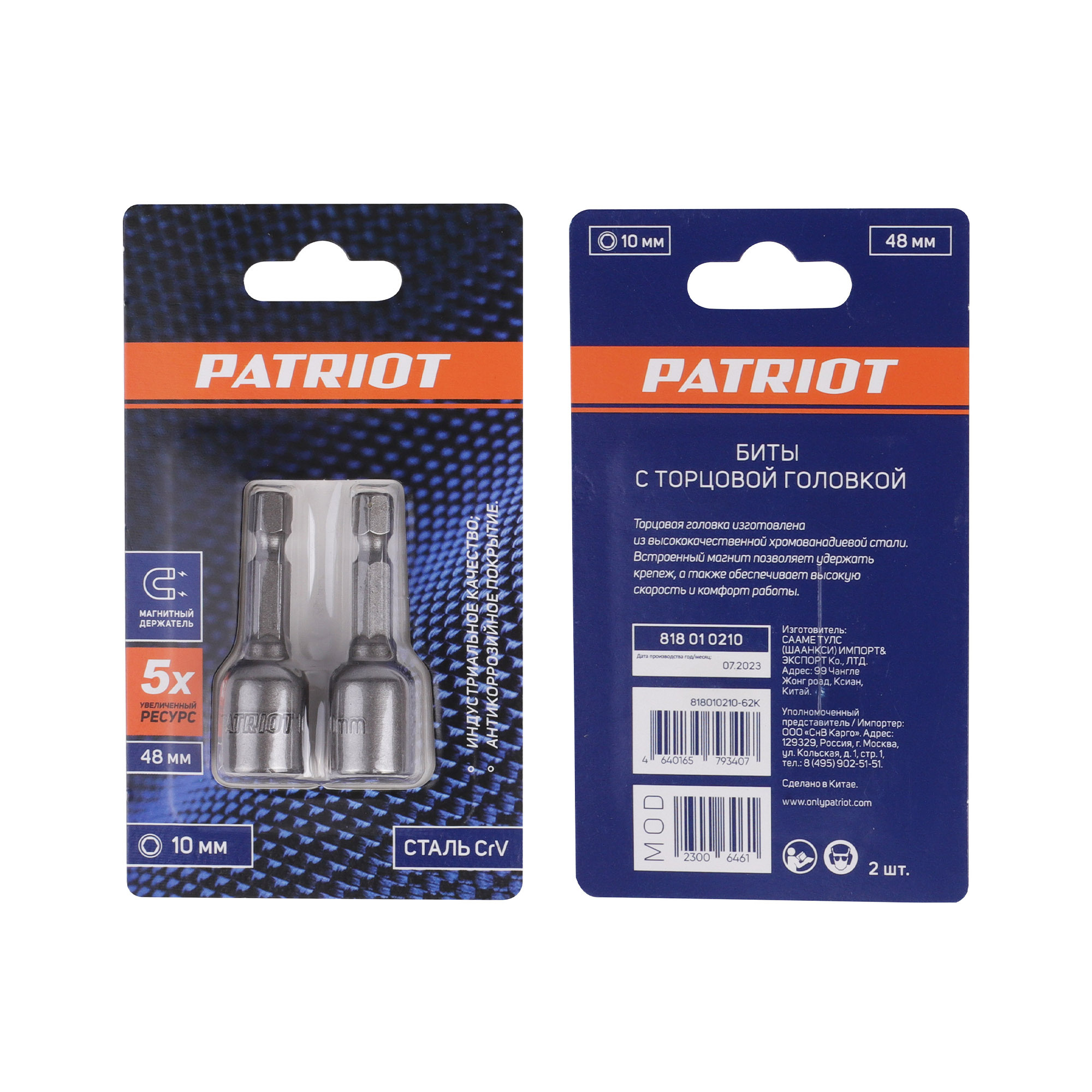 Бита PATRIOT с торцовой головкой 10 мм, магнитная, длина 48мм, 2шт в блистере
