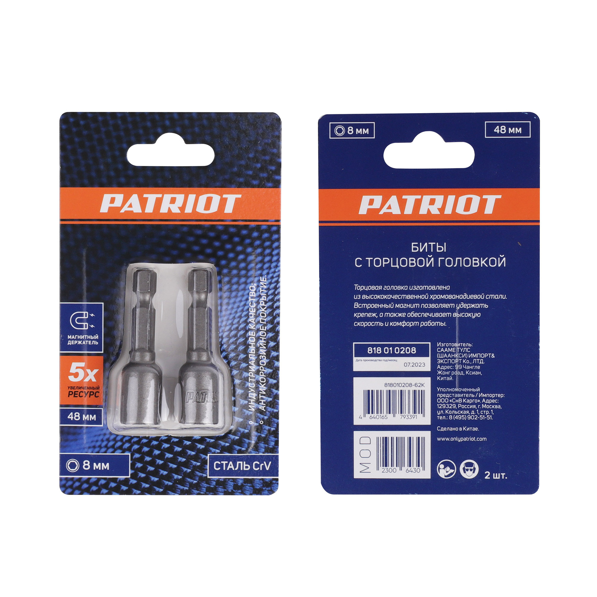 Бита PATRIOT с торцовой головкой 8 мм, магнитная, длина 48мм, 2шт в блистере