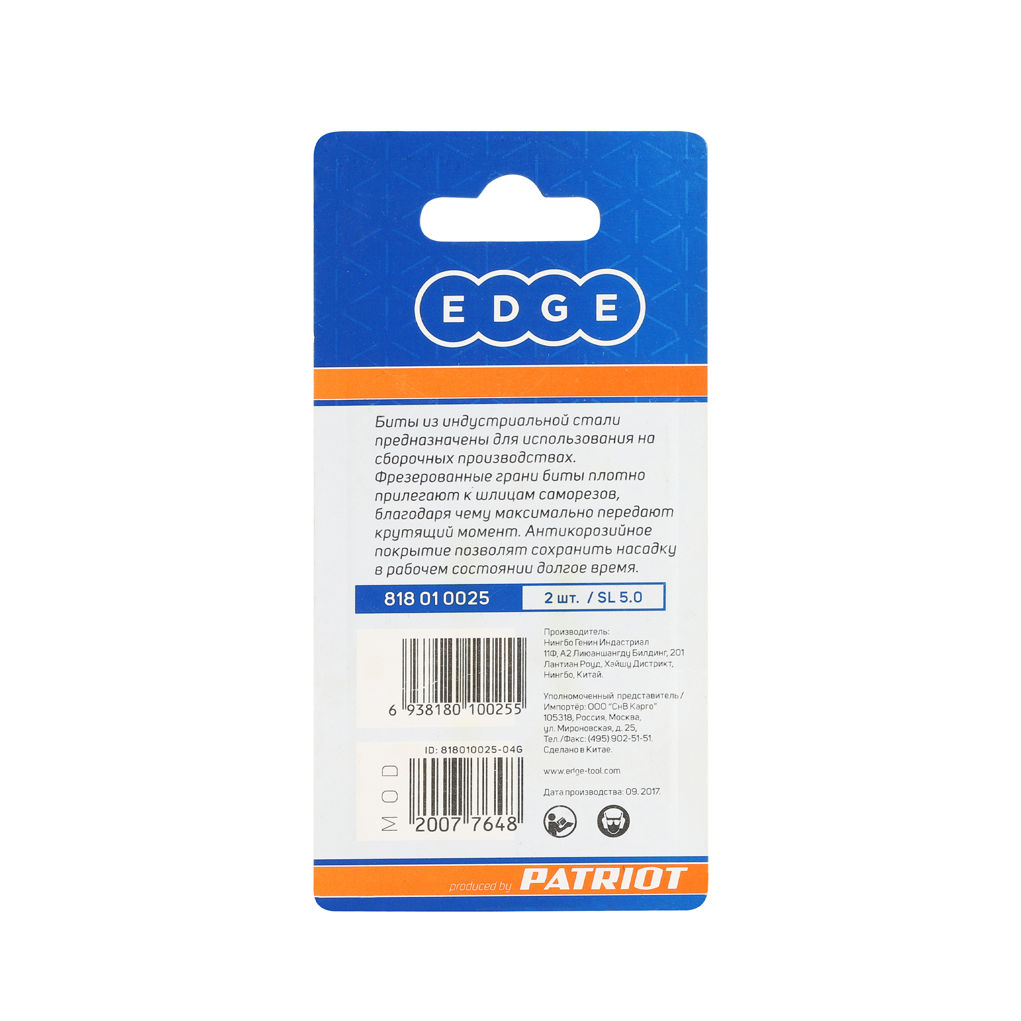 Фрезерованная бита из индустриальной стали SL 5.0 мм х 50 мм, 2шт в блистере