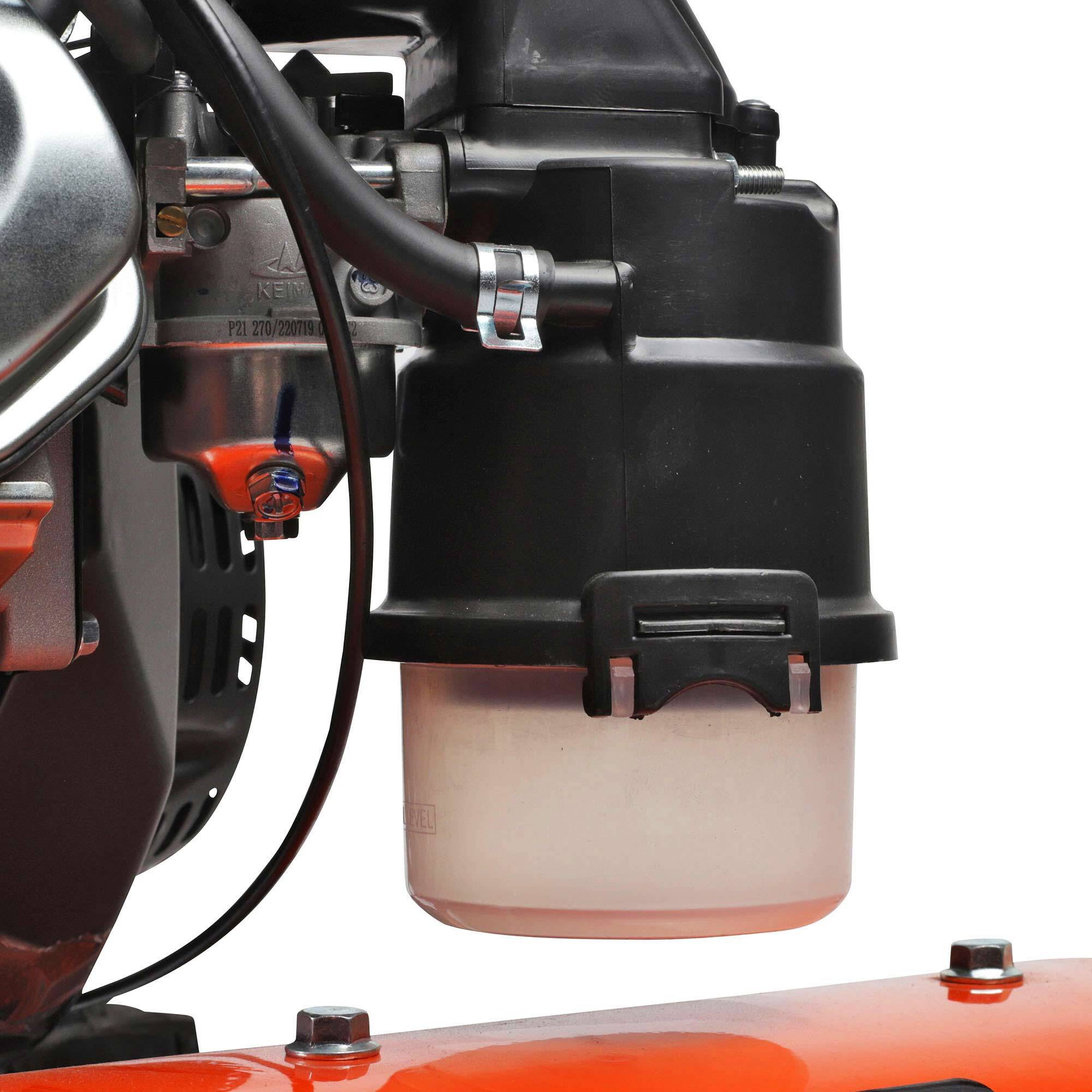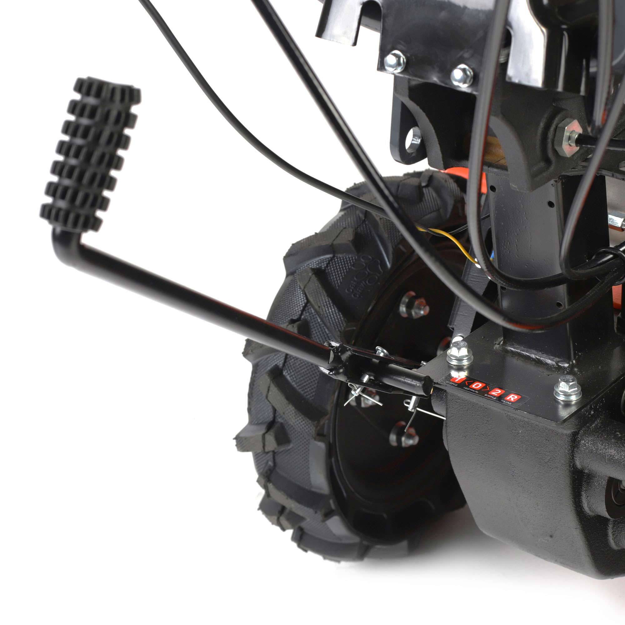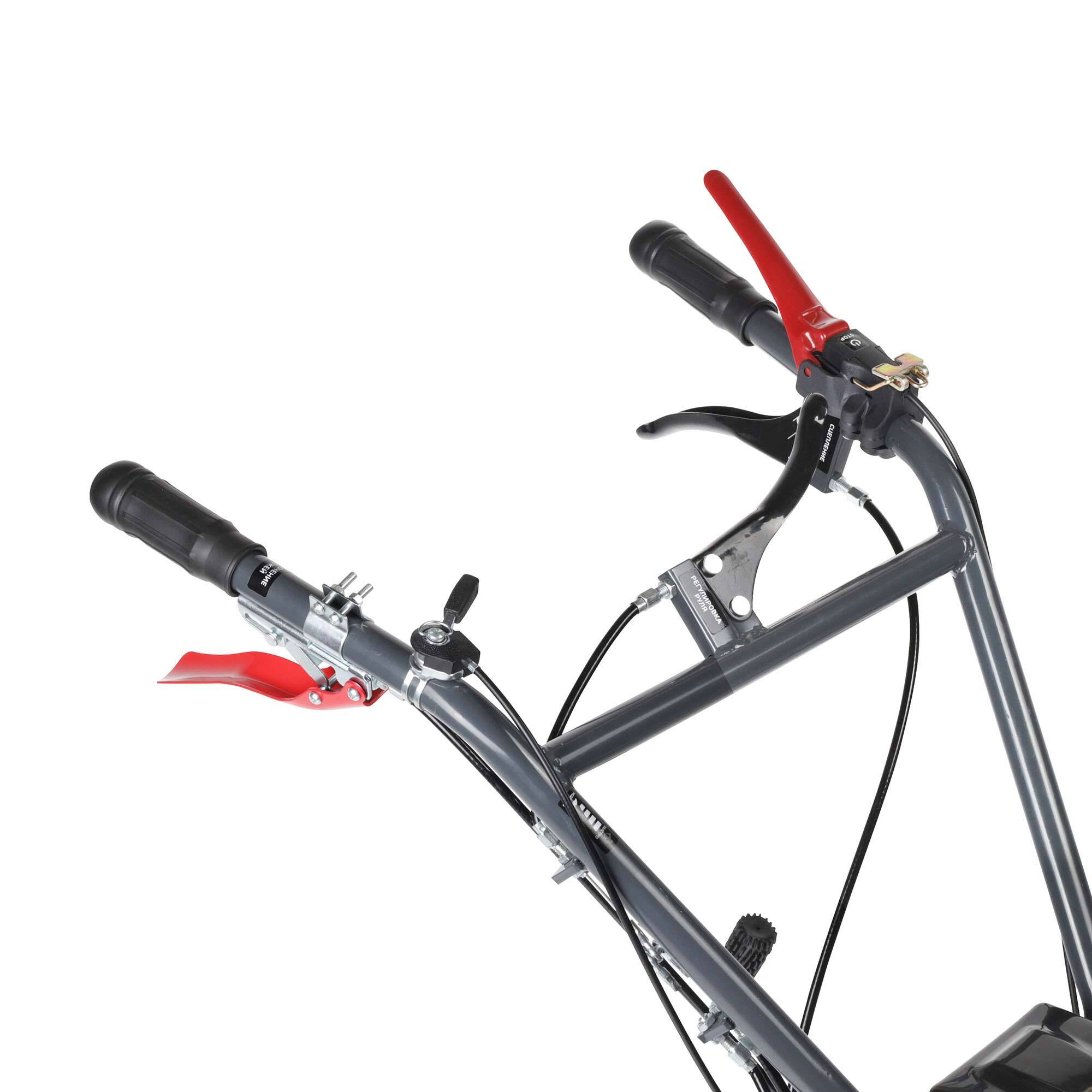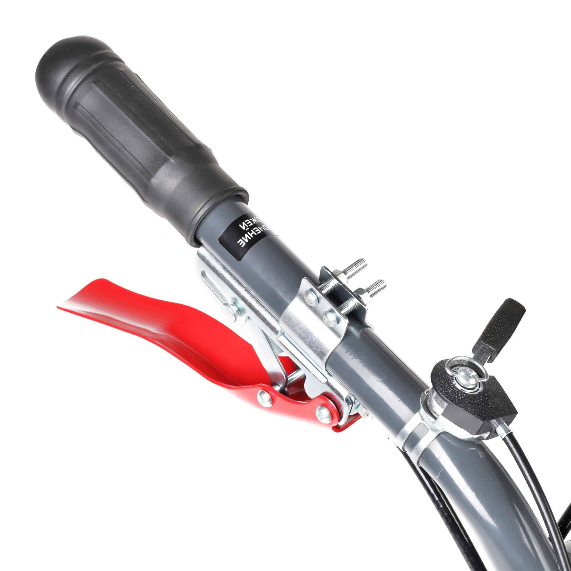 • Продуманная система безопасности исключает возможность работы бурьянокосилки при отпускании ручек управления;