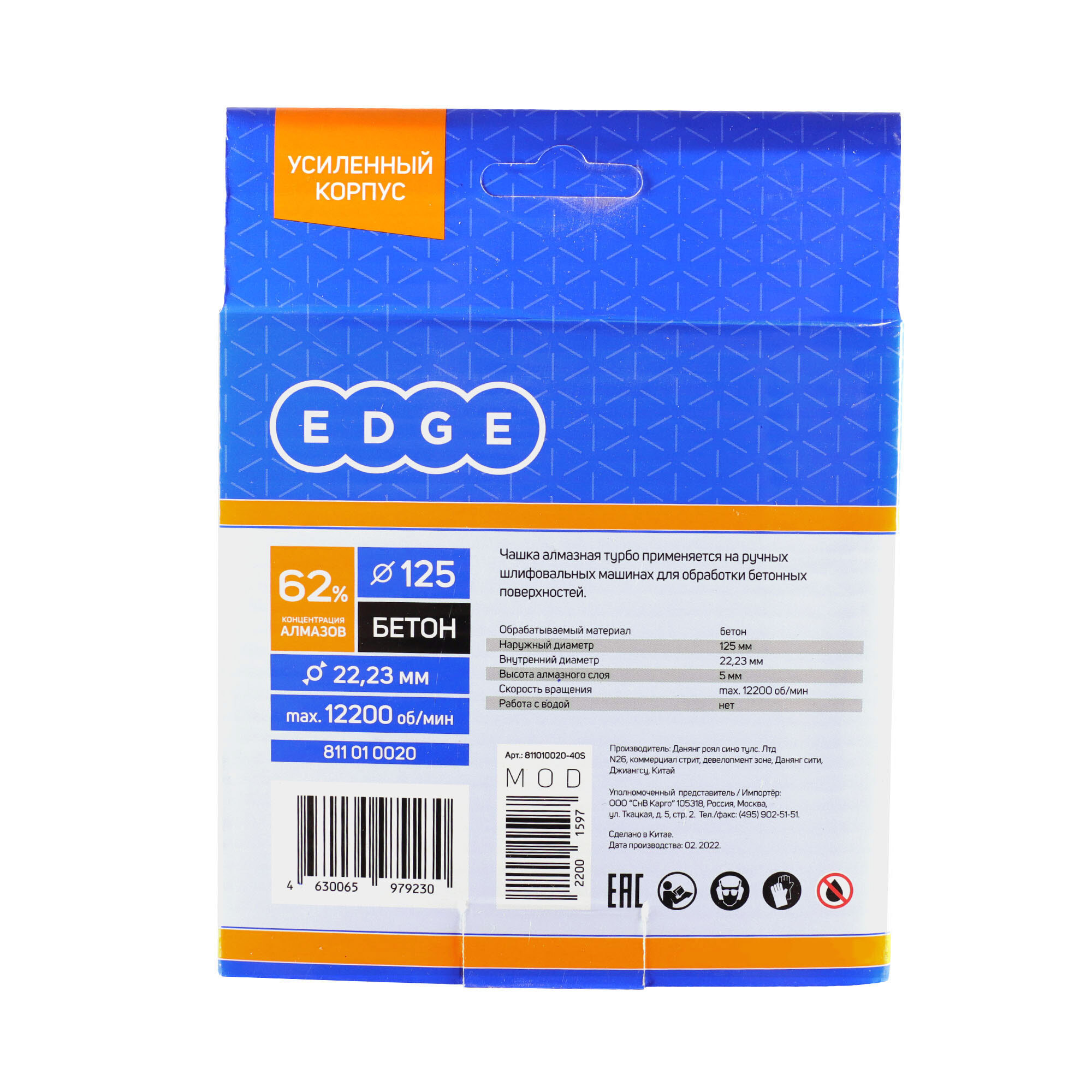 Наружный диаметр: 125 мм; Внутренний диаметр: 22,23мм; Высота алмазного слоя: 5 мм Обрабатываемый материал: Бетон Работа с водой: нет