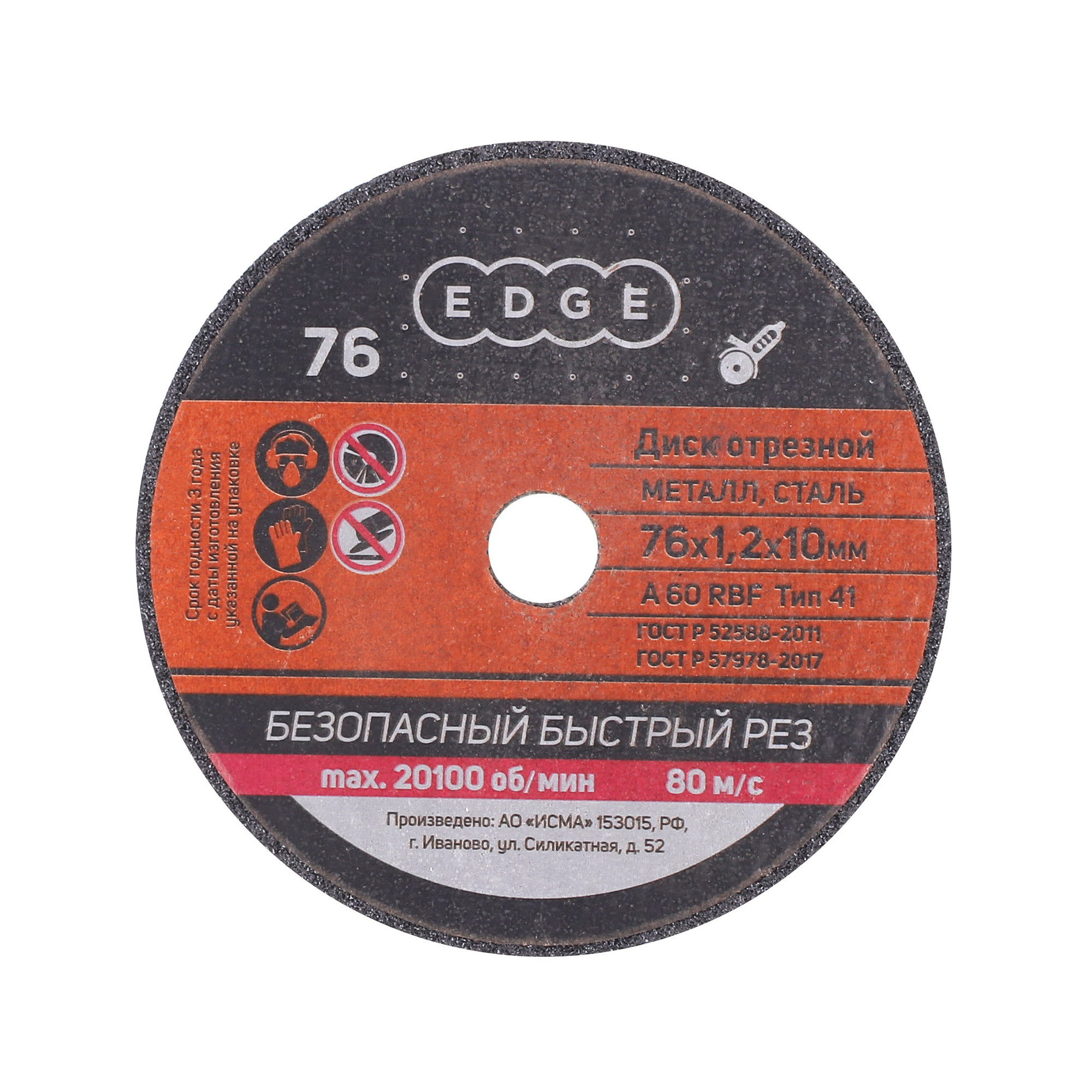Наружный диаметр: 76 мм; Внутренний диаметр: 10 мм; Толщина диска:1,2 мм Обрабатываемый материал: металл, сталь