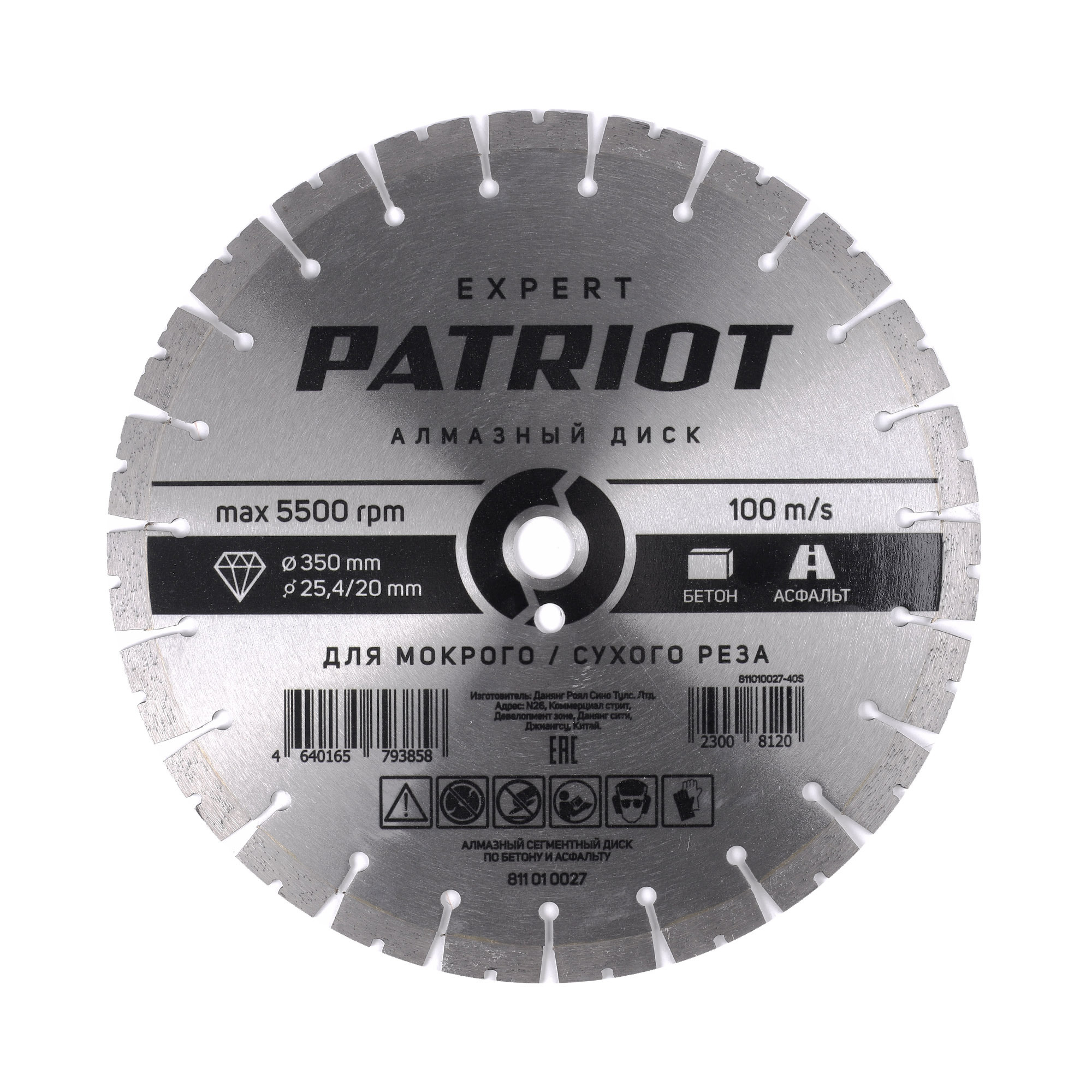 диаметр 350 мм, толщина 3 мм, посадочный диаметр 20/25.4 мм, слой 10 мм, сегментный, с водным охлаждением, для бетона/асфальта