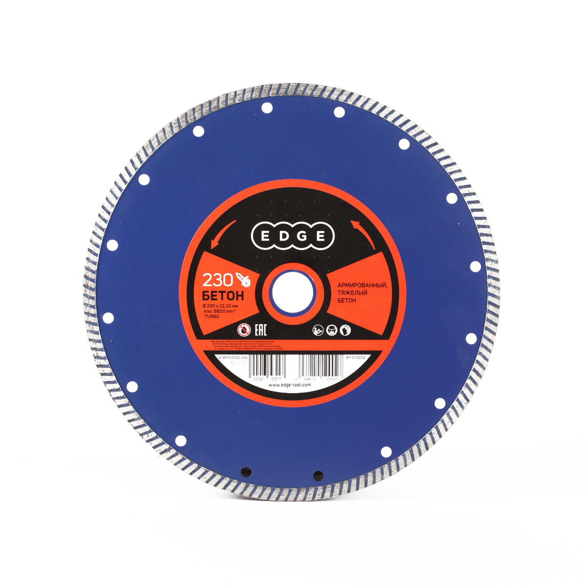 Наружный диаметр: 230 мм; Внутренний диаметр: 22,23мм; Толщина алмазного слоя:2,8мм Высота алмазного слоя: 7мм Обрабатываемый материал: армированный бетон, тяжелый бетон Работа с водой: нет