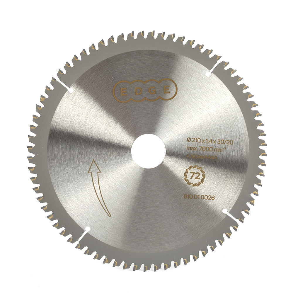 Наружный диаметр 210мм, кол-во зубьев 72, посадочное отверстие 30мм,20мм пильный диск для циркулярной или отрезной пилы с твердосплавными напайками, специально заточенными для распиловки алюминия.