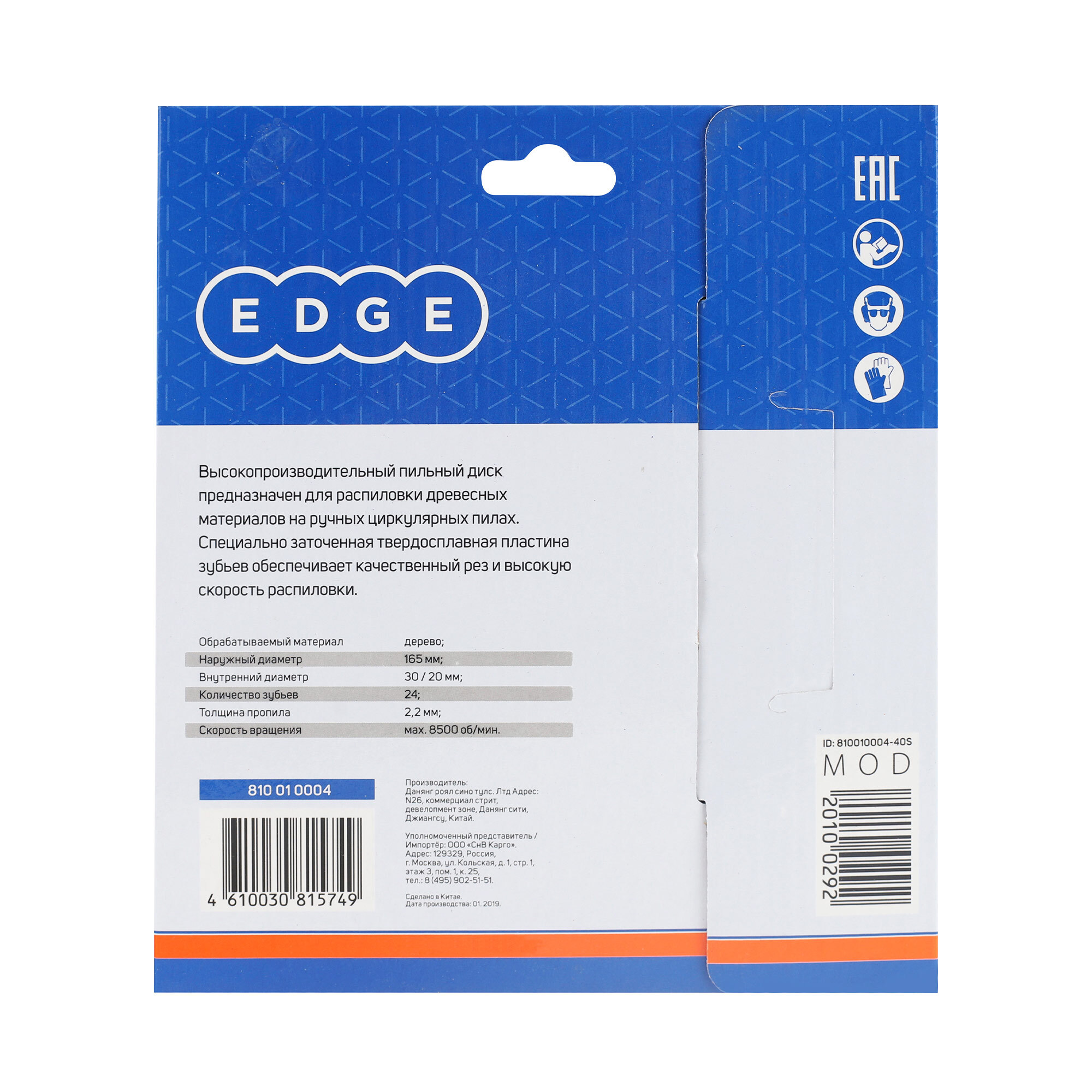 Диск пильный; Упаковка;