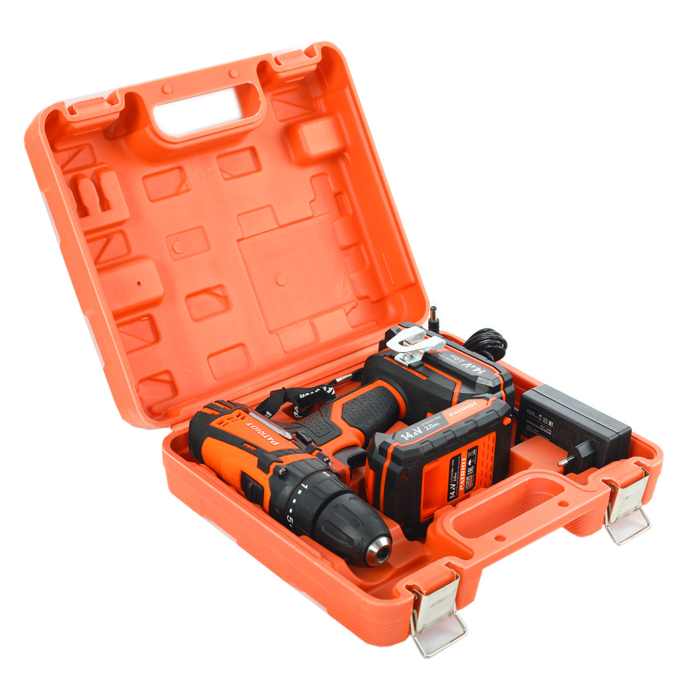 Дрель-шуруповерт аккумуляторная; Аккумуляторная батарея: 2 шт.; Зарядное устройство; Двусторонняя бита; Пластиковый кейс; Инструкция по эксплуатации;
