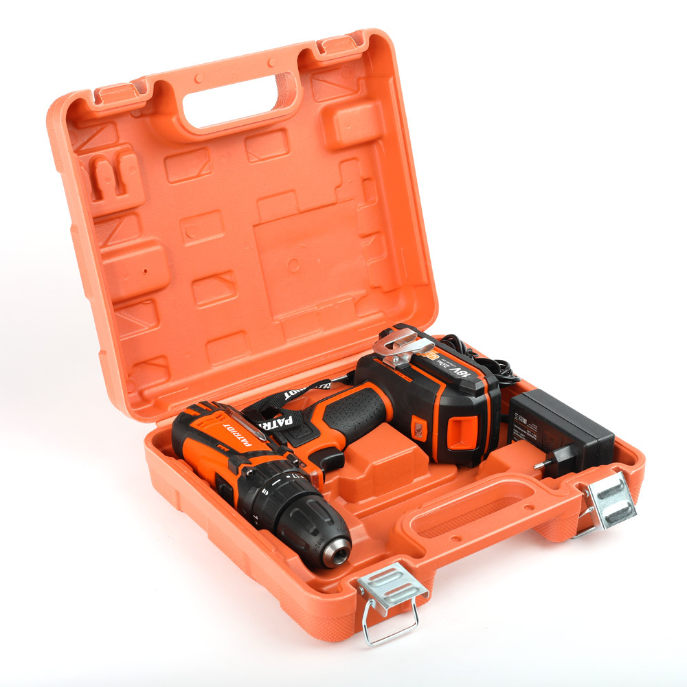 Дрель-шуруповерт аккумуляторная; Аккумуляторная батарея; Зарядное устройство; Двустороняя бита; Пластиковый кейс; Инструкция по эксплуатации;