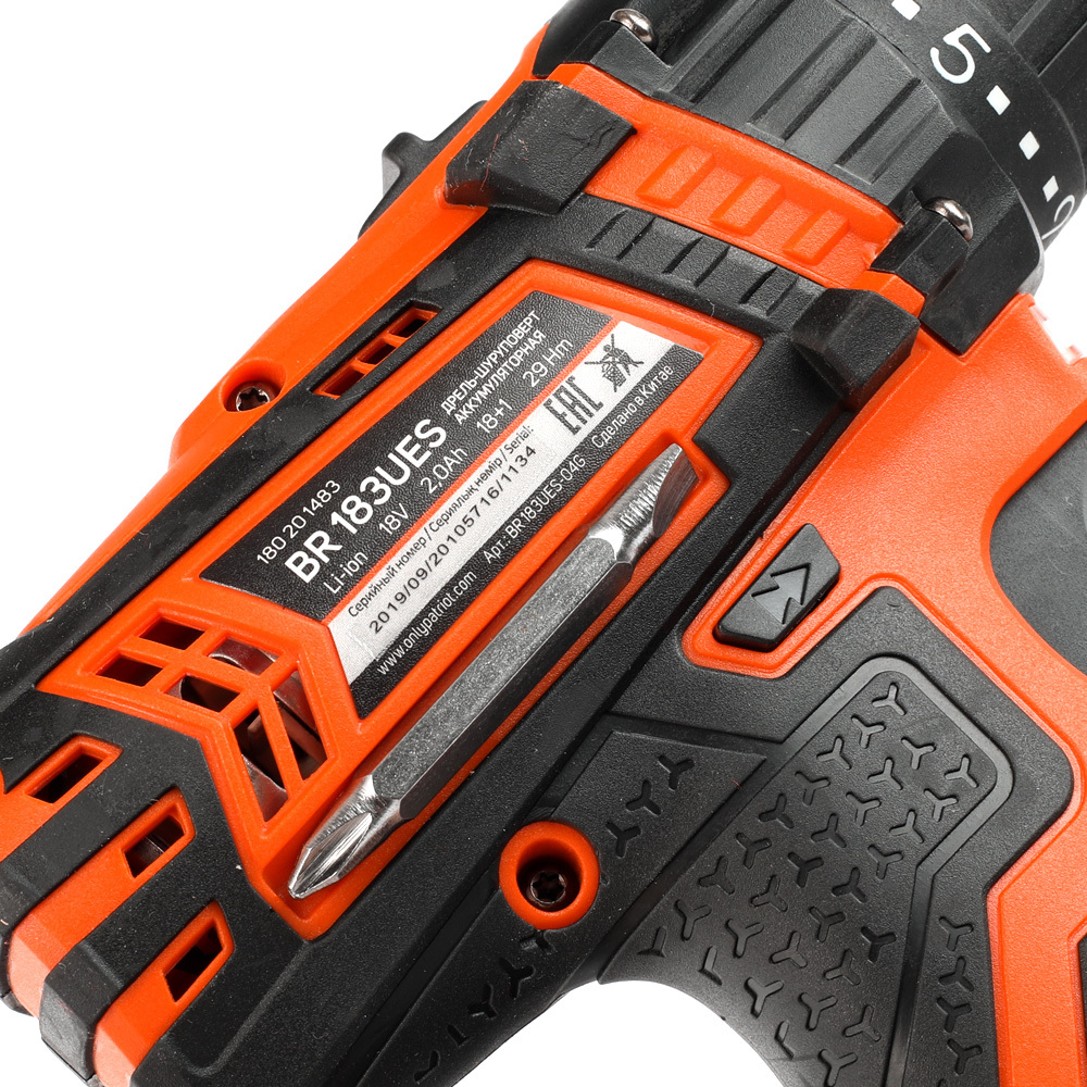 BR 183UES - дрель-шуруповерт предназначен для работы с крепежом среднего размера и сверления отверстий в металле, дереве, бетоне. 18 степеней регулировки крутящего момента позволят точно подобрать режим для каждого материала и крепежа. Для комфортной работы рукоятки покрыты прорезиненными накладками ExtraGrip. Двусторонняя подсветка улучшает видимость в рабочей зоне. Магнитный держатель не даст потерять биты и сверла во время работы – их можно хранить на корпусе шуруповерта.