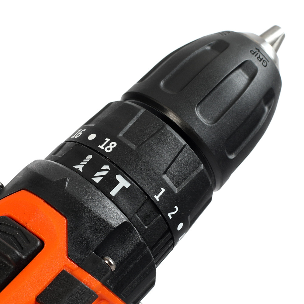 Дрель-шуруповерт аккумуляторная; Аккумуляторная батарея: 2 шт.; Зарядное устройство; Двустороняя бита; Пластиковый кейс; Инструкция по эксплуатации;