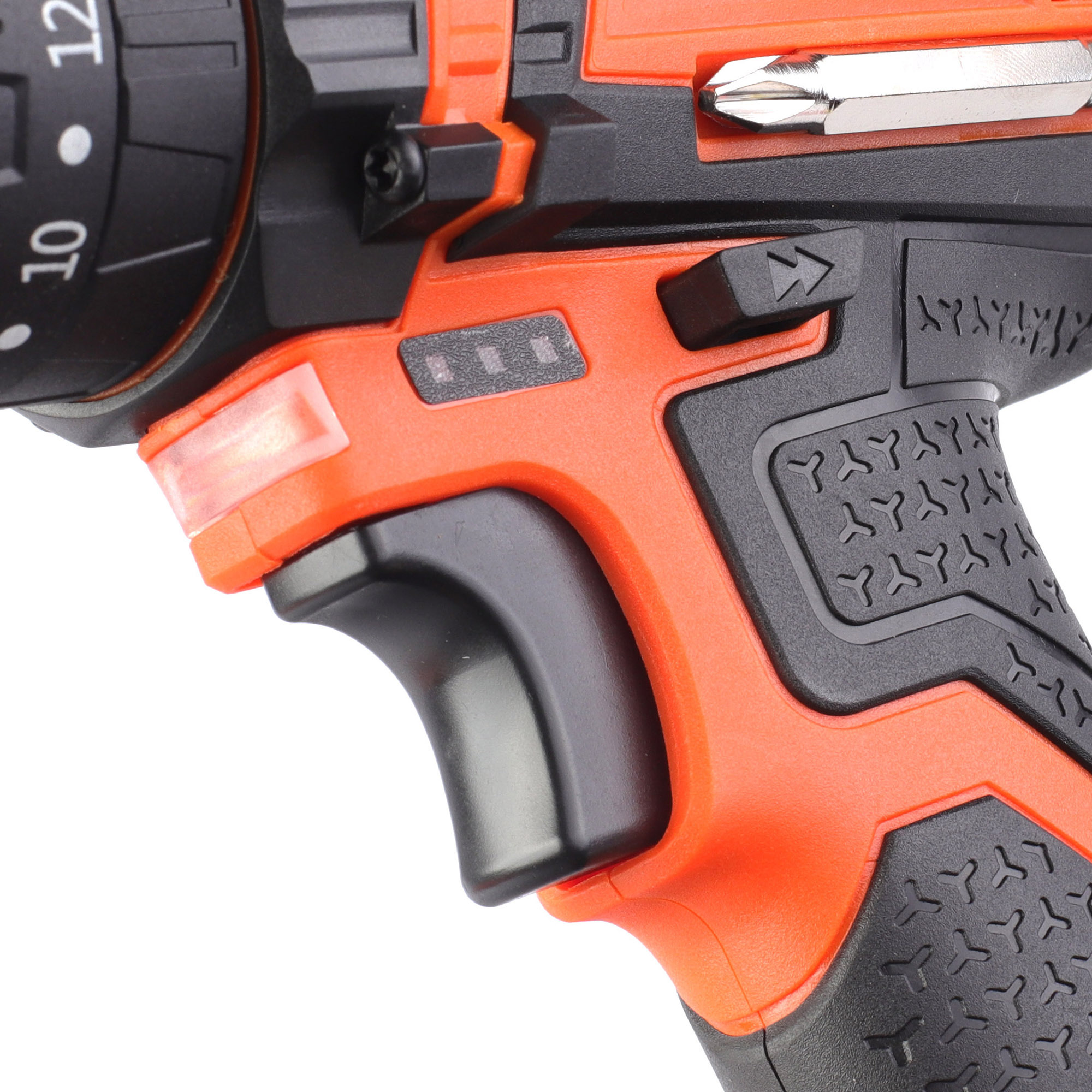 Дрель-шуруповерт аккумуляторная; Аккумуляторная батарея: 2 шт.; Зарядное устройство; Двустороняя бита; Пластиковый кейс; Инструкция по эксплуатации;