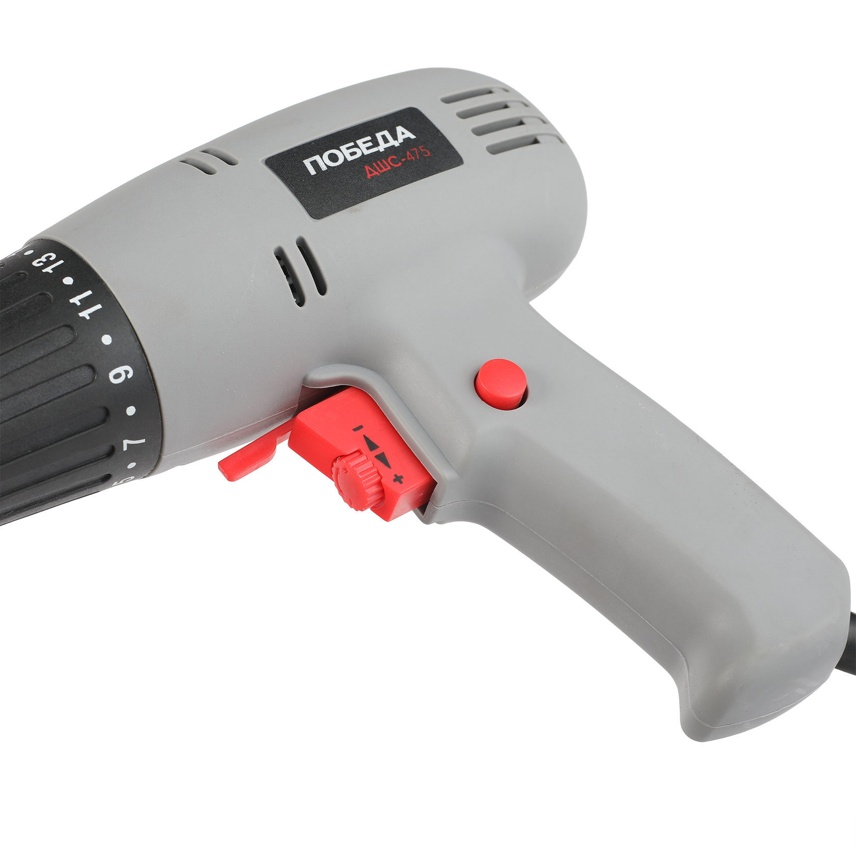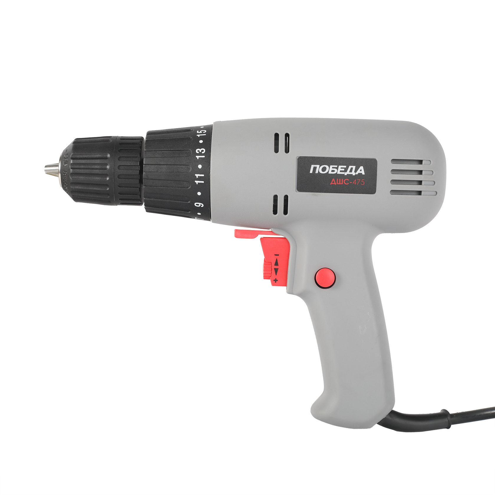 475 Вт, 1 скорость 0-800 об/мин, 19 Нм, оснастка 10 мм, быстрозажимной патрон