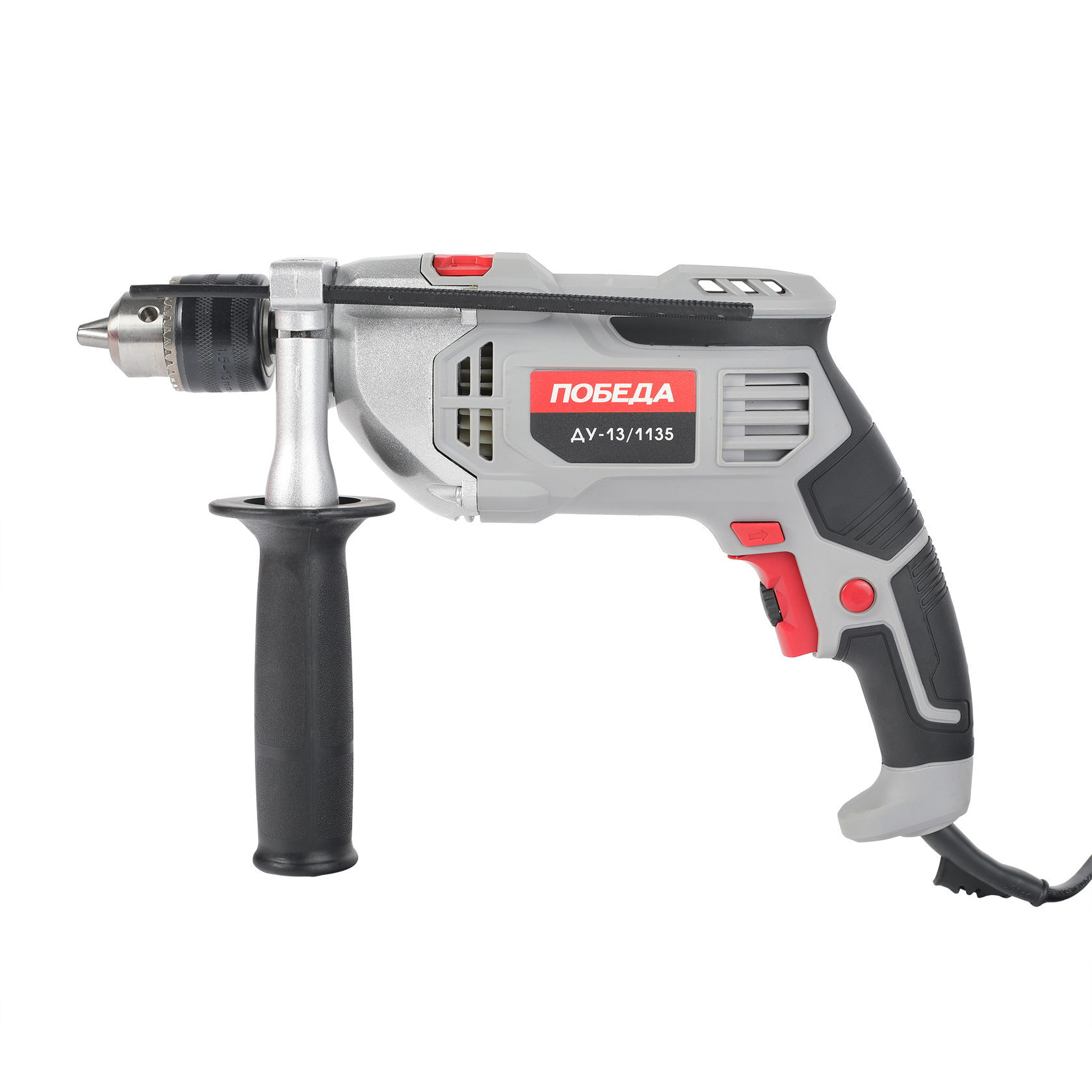 1135 Вт, 0-3000 об/мин, 48000 уд/мин, макс. диаметр 13 мм, ключевой патрон, глубиномер, дополнительная ручка