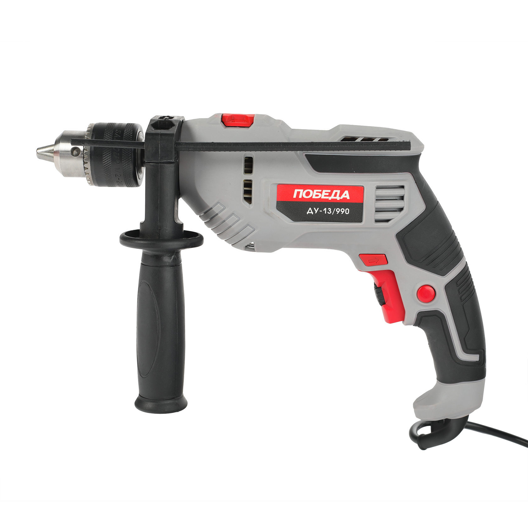 990 Вт, 0-3000 об/мин, 48000 уд/мин, макс. диаметр 13 мм, ключевой патрон, глубиномер, дополнительная ручка