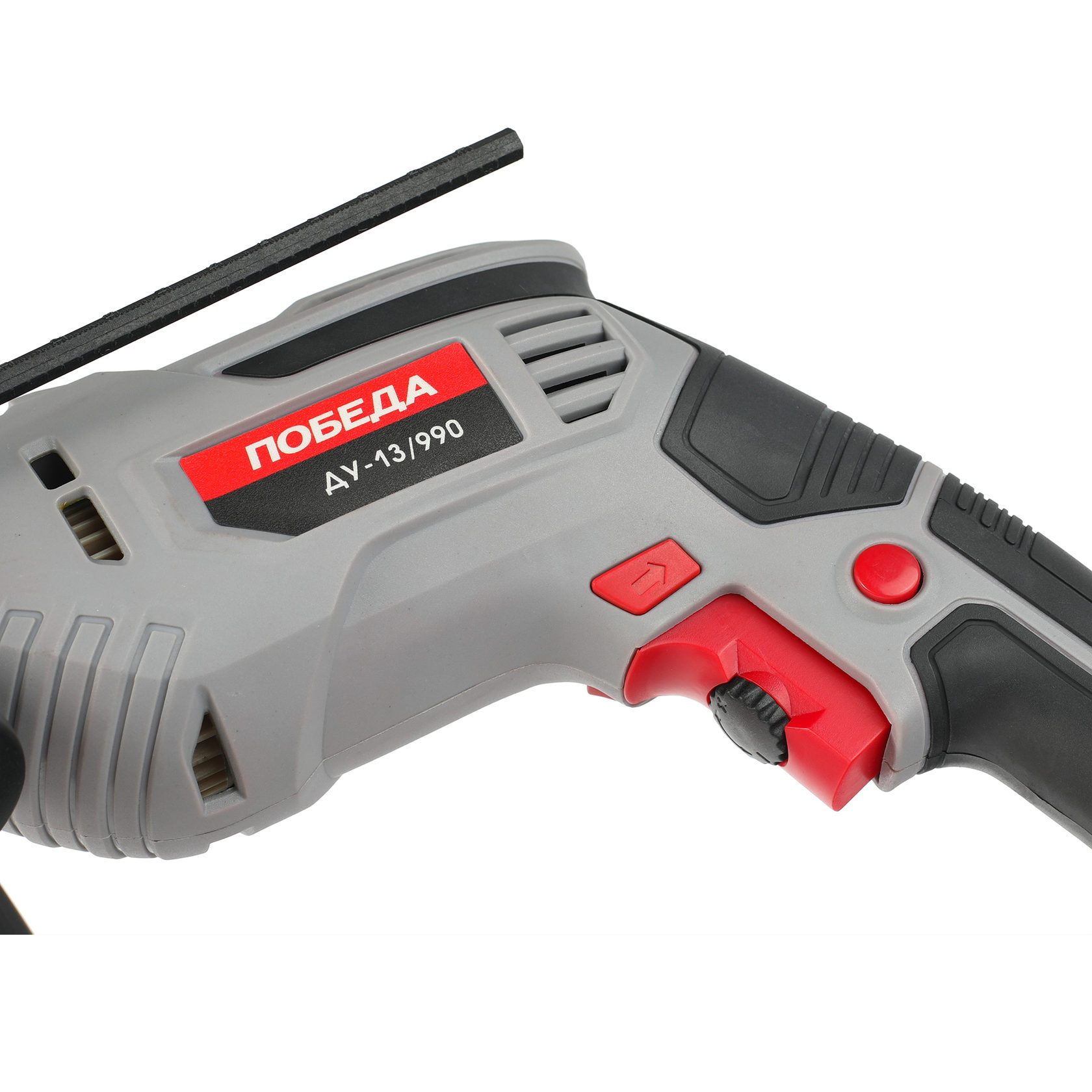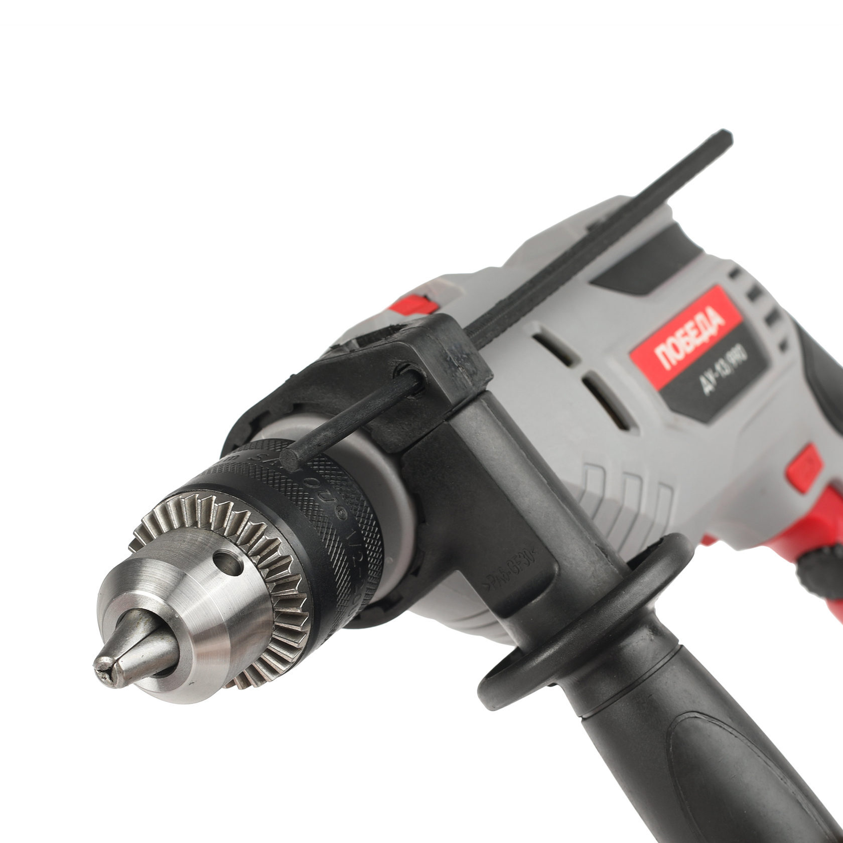 Дрель ударная ДУ-13/990 оснащена функцией реверса, что облегчает изъятие сверла из материала в случае застревания. Точные по глубине отверстия в материале достигаются с помощью ограничителя глубины сверления. С помощью специального колесика, регулирующего частоту вращения, можно настроить инструмент под конкретный материал. Рукоятка имеет мягкую накладку и упор в нижней части для надежного захвата дрели во время работы.
