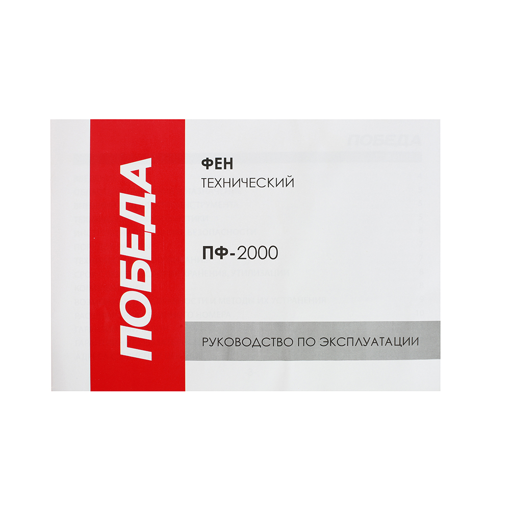 Фен технический ПОБЕДА, ПФ-2000, 2 режима, 2000 Вт, цветная коробка