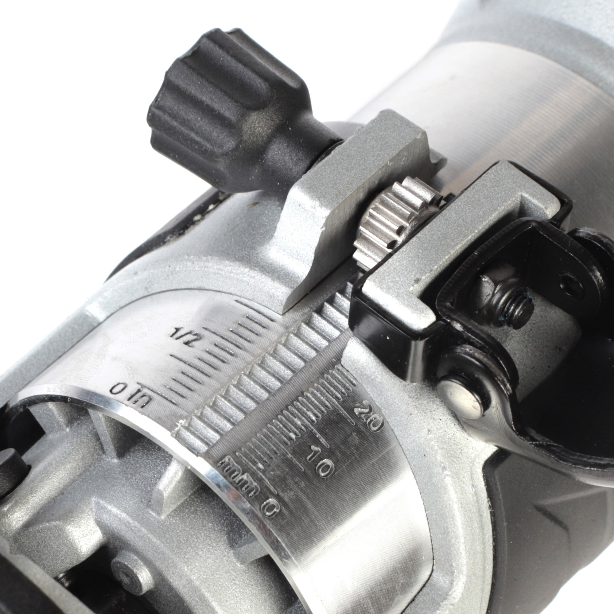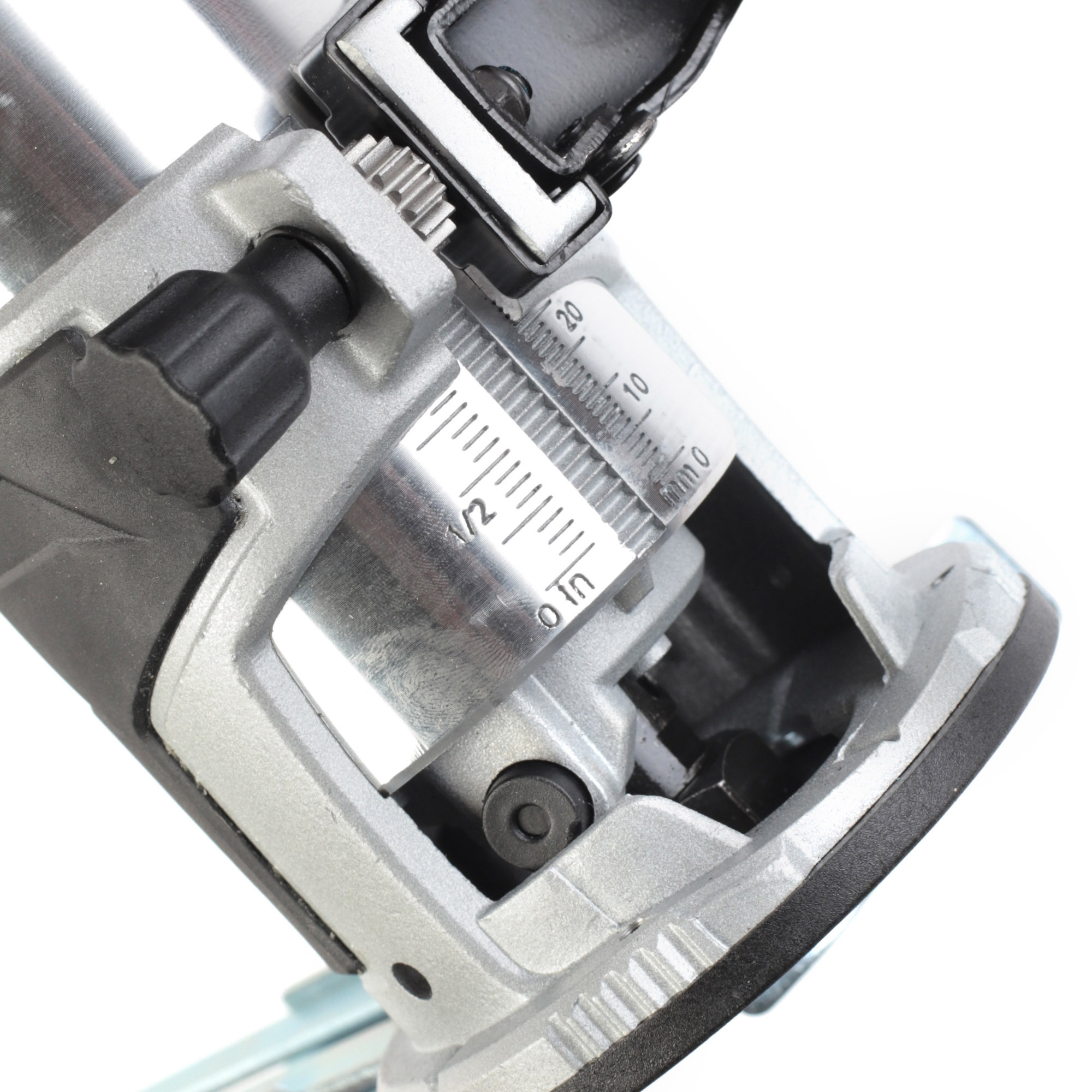 Эргономичный дизайн ER 100 обеспечивает удобное и надежное управление одной рукой. Прочный корпус двигателя из литого алюминия, рассчитанный на повышенную долговечность Градуированные по глубины в дюймах и миллиметрах, легко читаются. Быстроразъемная система кулачкового замка для легкой регулировки глубины и снятия / установки основания. ER 100 предлагает с 6 диапазонами переменной скорости вращения 13 000 - 33 000 об / мин может легко справиться с различными породами мягкой и твердой древесины.