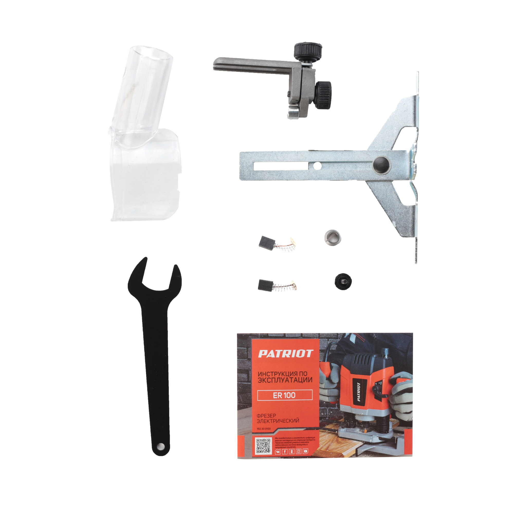 Фрезер электрический; Прямая направляющая; Пылесборник; Комплект угольных щеток; Инструкция по эксплуатации;