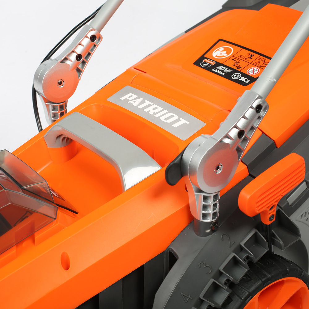 Аккумуляторная газонокосилка Patriot CM 435 XL. Поставляется в сборе с аккумулятором BL 402 и зарядным устройством GL 402. Эргономичная ручка управления с индикатором уровня заряда аккумулятора и возможностью выбора положения для рук оператора во время работы. Возможность быстрой сборки ручки управления без использования ключей. Широкие пусковые клавиши для удобства в работе. Долговечный пластиковый травосборник, позволяющий использовать химию для мойки. Контрольное окно на травосборнике, позволяющее контролировать наполнение. Центральня регулировка высоты кошения - 5 позиций регулировки. Защита от несанкционированного пуска - пластиковый ключ.