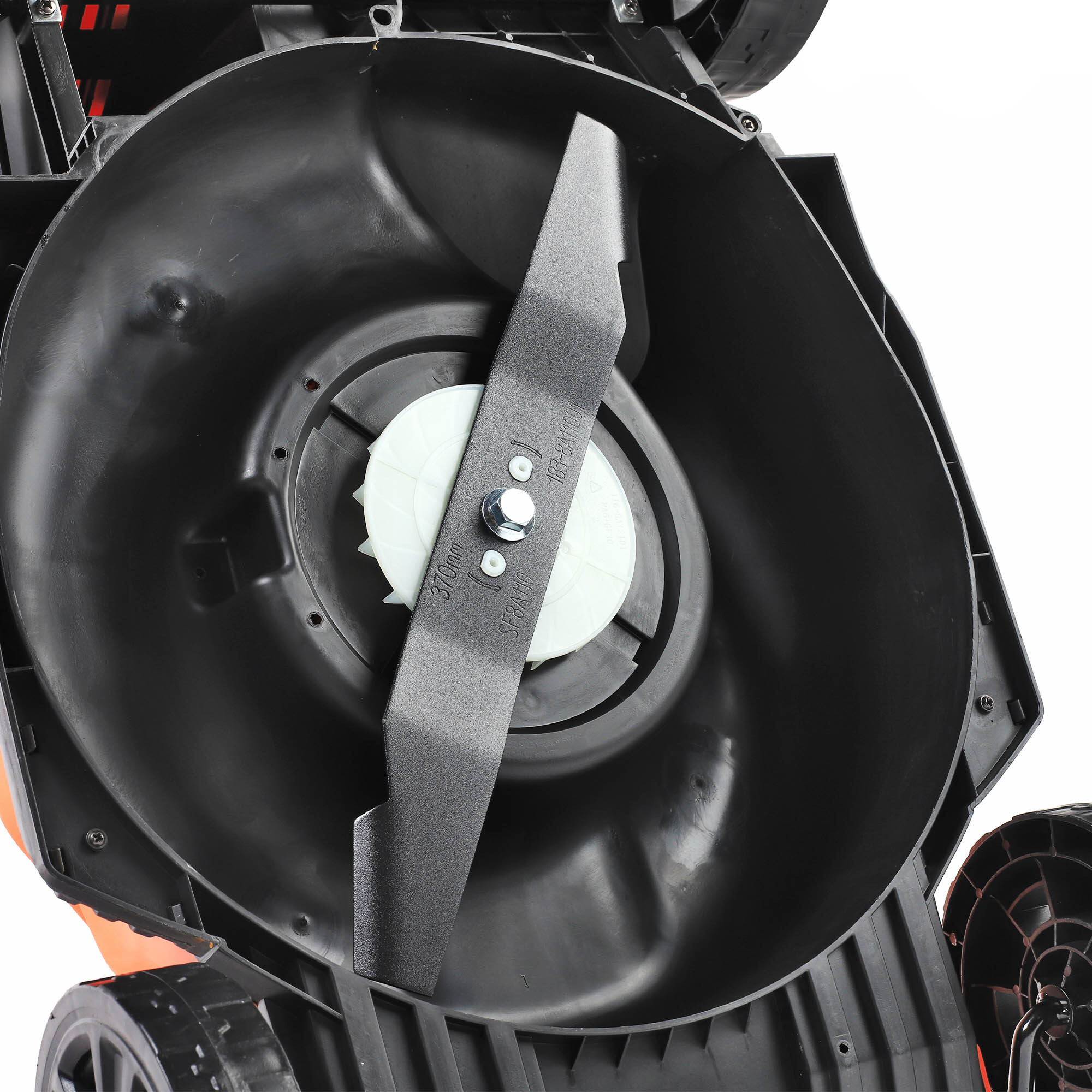 21 В, Li-ion, 4 Ач, ширина скашивания 37 см, высота скашивания 25-75 мм, 6 режимов регулировка высоты, травосборник 35 л, мульчирование, задний выброс травы, корпус ABC пластик, без АКБ и ЗУ