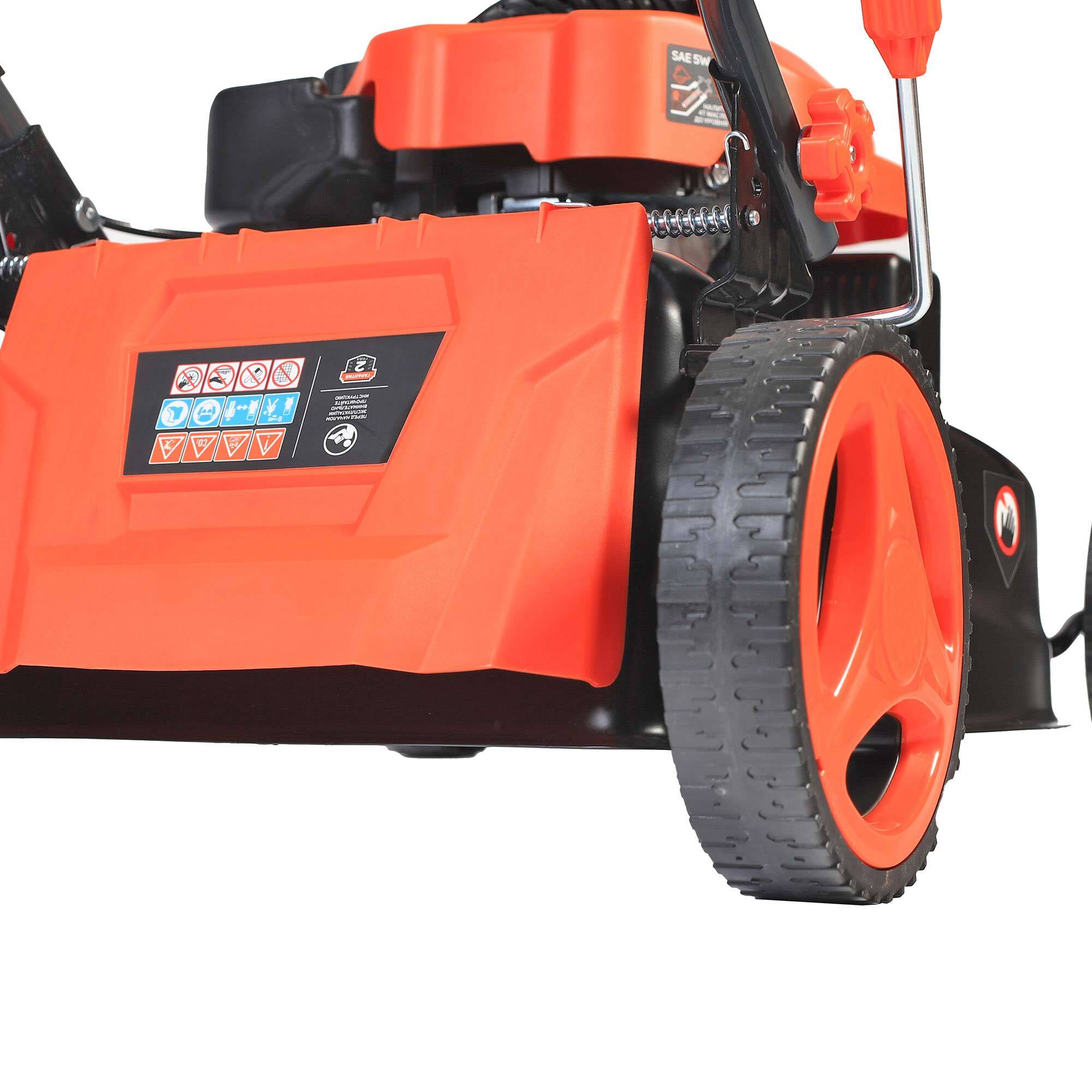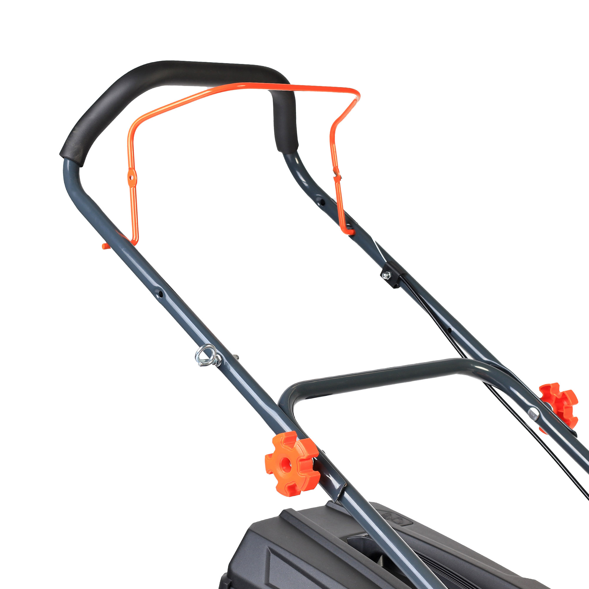 4 л.с, 150 см.куб, ширина скашивания 41 см, 25-75 мм высота скашивания, травосборник 40 л, топливный бак 0.8 л, 4-х тактный двигатель, задний выброс травы, индикатор заполнения травосборника, складная рукоятка, стальная дека