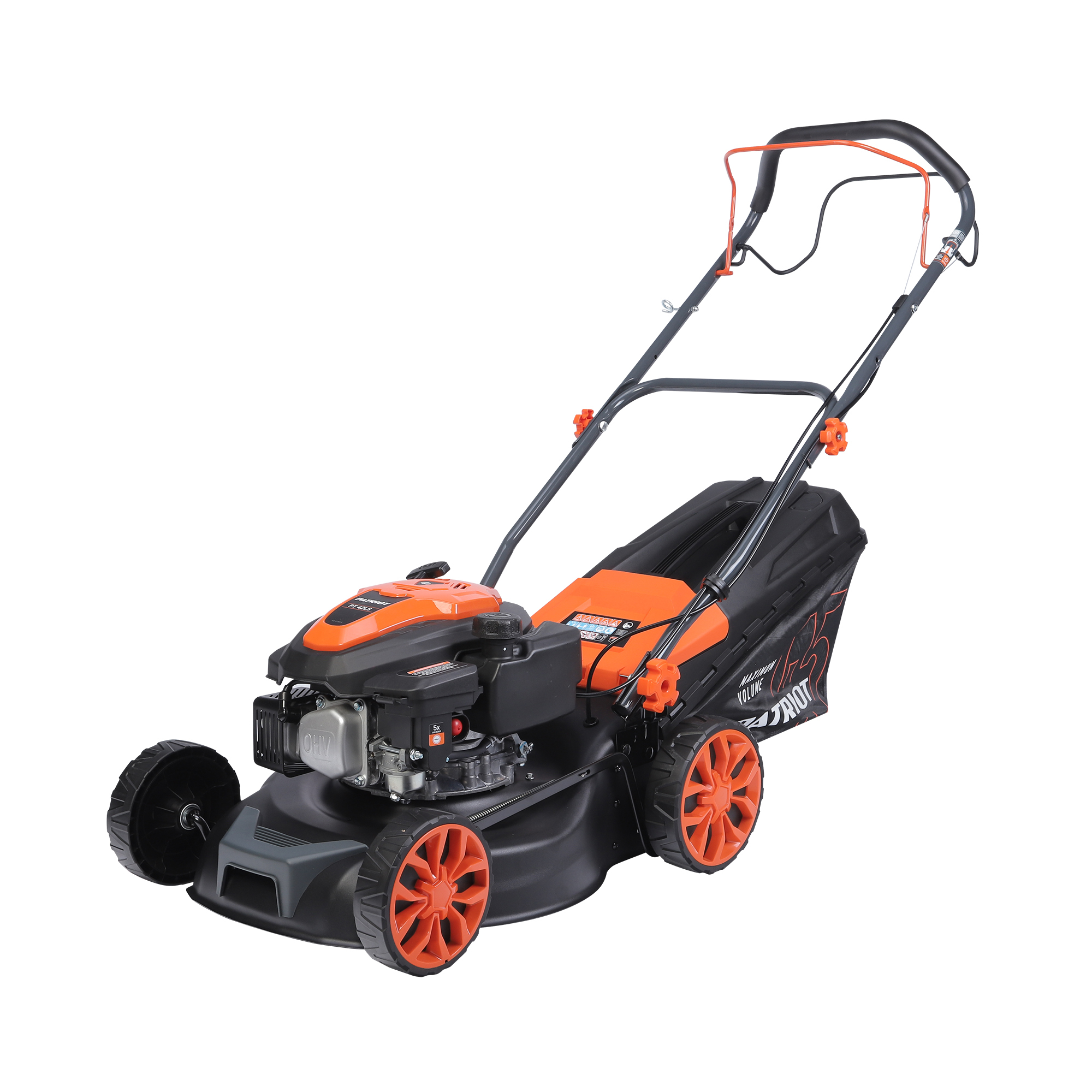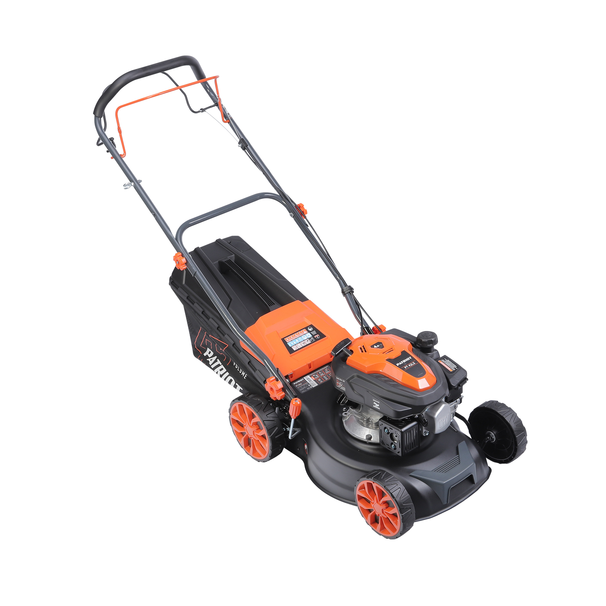 4 л.с, 150 см.куб, ширина скашивания 41 см, 25-75 мм высота скашивания, травосборник 40 л, топливный бак 0.8 л, 4-х тактный двигатель, задний выброс травы, мульчирование, самоходная, стальная дека, индикатор заполнения травосборника, складная рукоятка