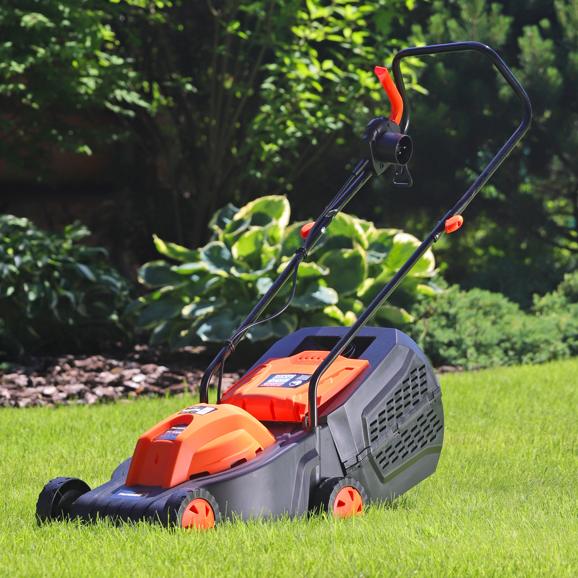 1000 Вт, ширина скашивания 32 см, травосборник 30 л, 25-55 мм высота скашивания, 3 режима регулировки высоты, задний выброс травы, складная рукоятка, пластиковая дека