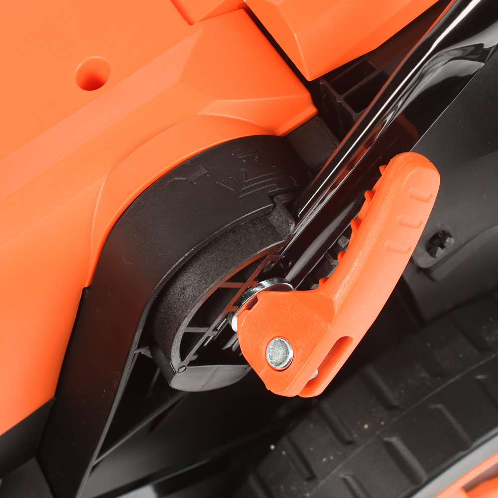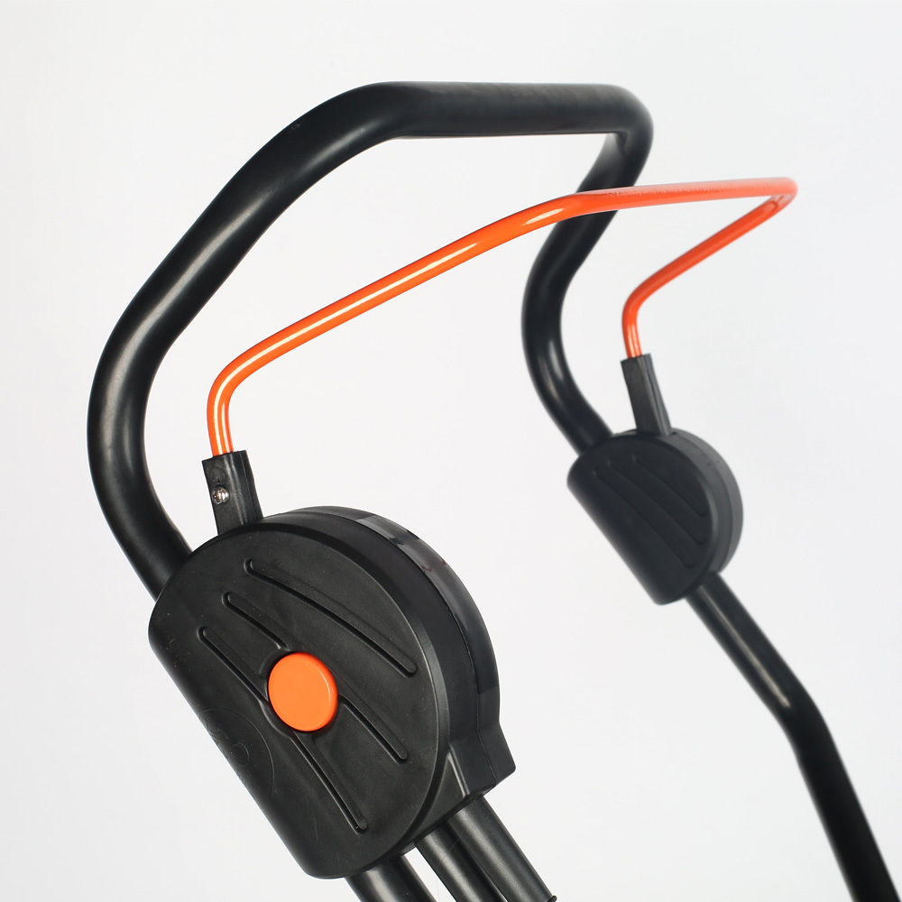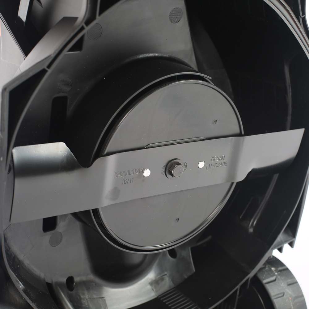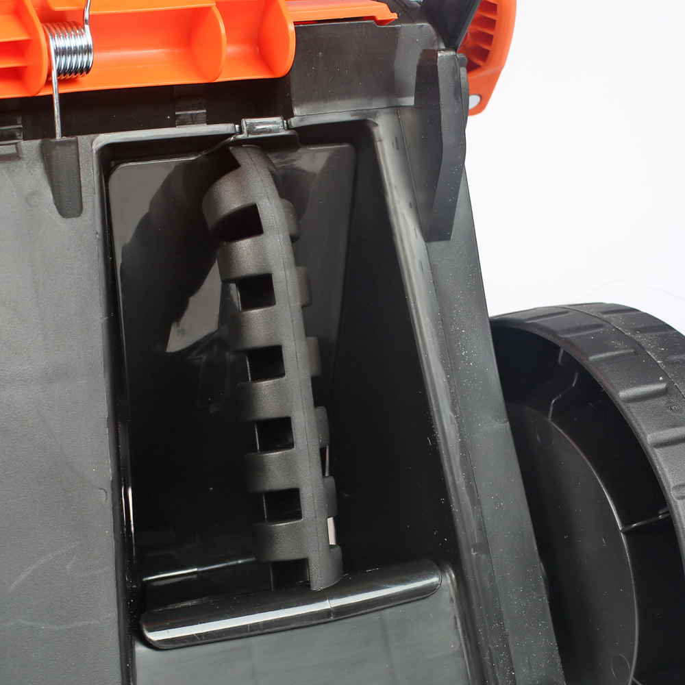Складная рукоятка, съёмный травосборник и компактный размер позволяют легко транспортировать и хранить газонокосилку.