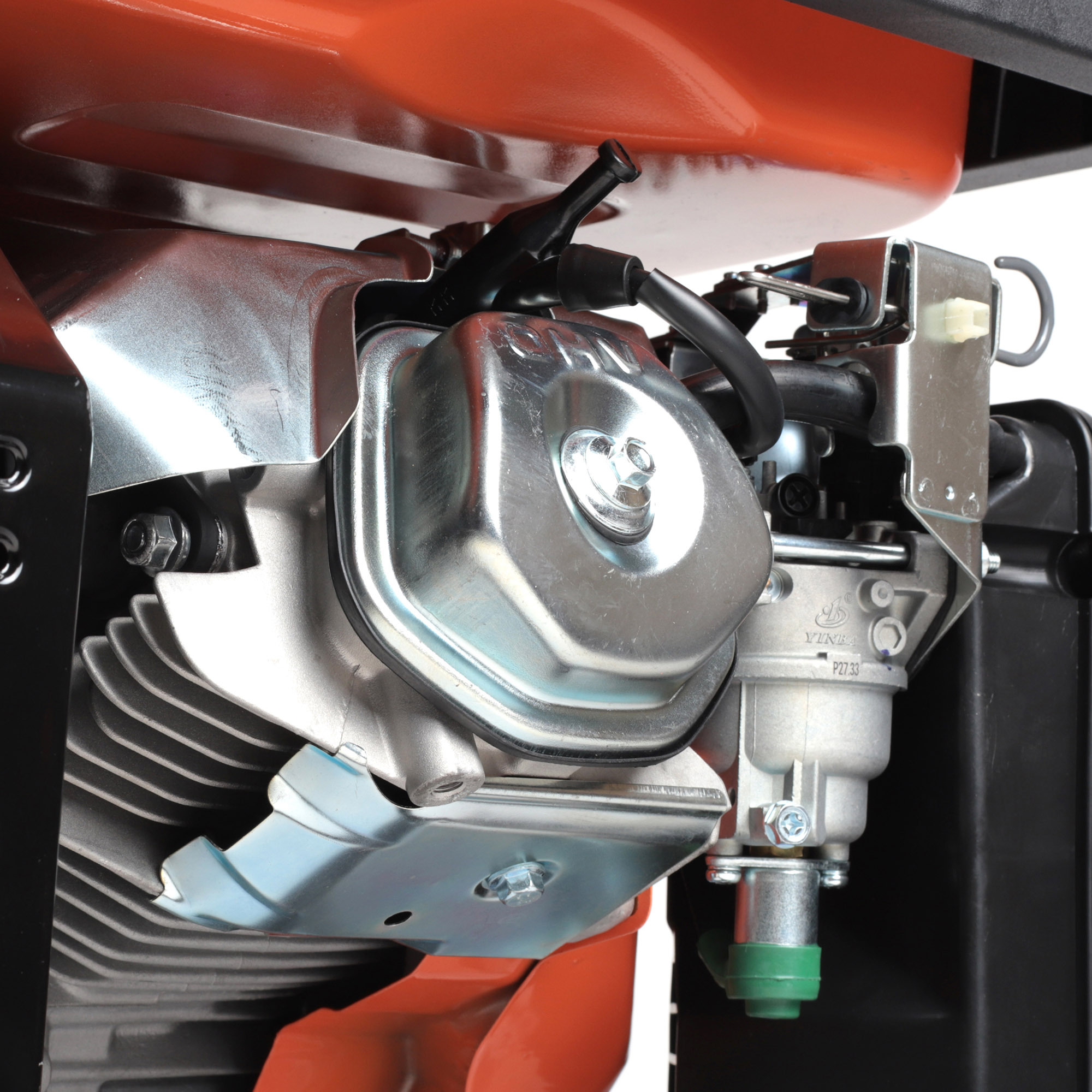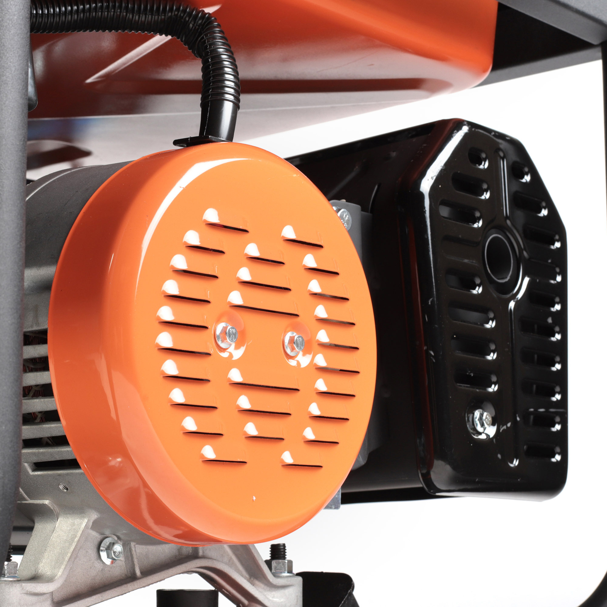 Оснащен двигателем с верхним расположением клапанов [OHV], что значительно увеличивает ресурс, снижает выхлоп и уровень шума. Надежный регулятор напряжения AVR и медная обмотка альтернатора позволяют выдерживать кратковременные 3х кратные перегрузки для использования с мощным электроинструментом. Датчик контроля масла исключает запуск и работу генератора при отсутствии или низком уровне масла в картере.