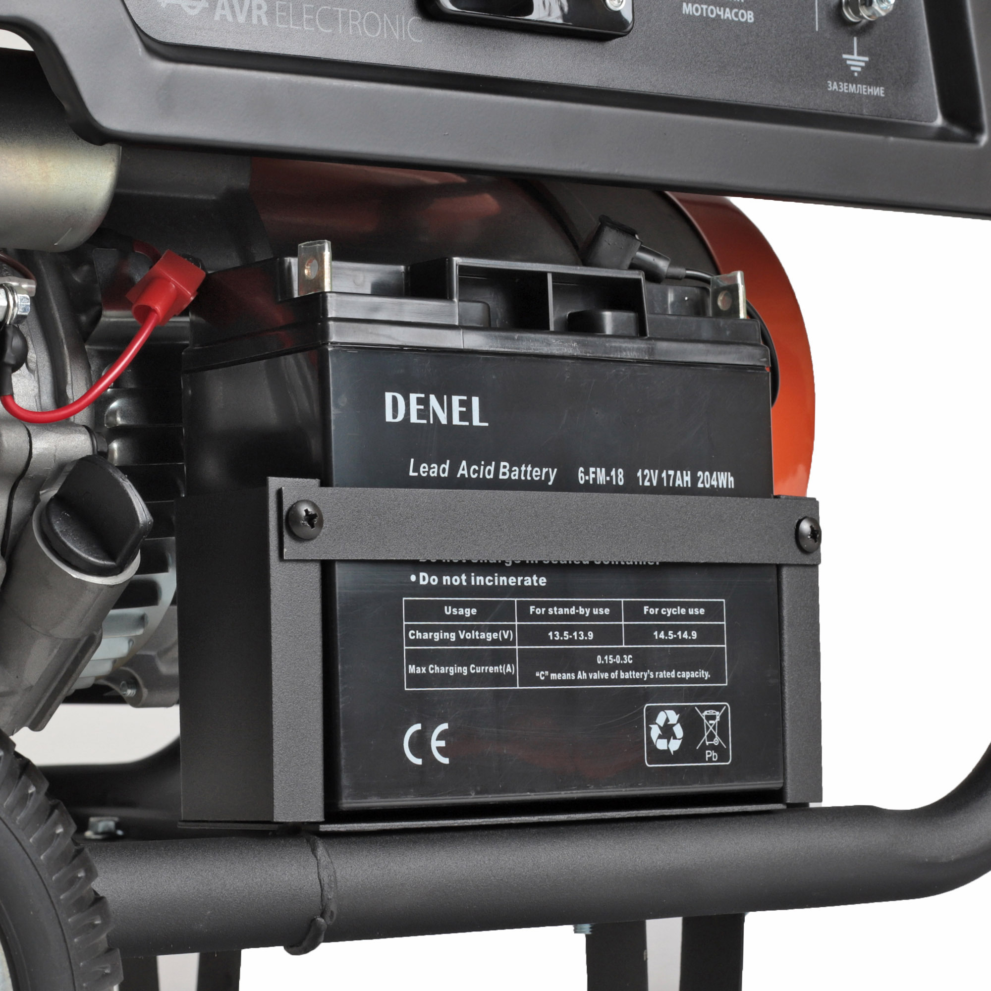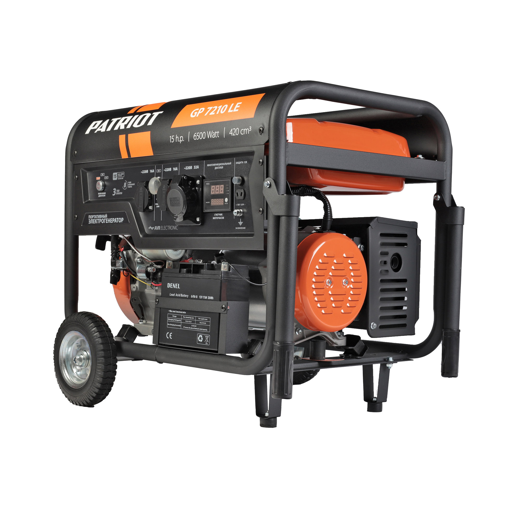 мощность 6.5-6 кВт, 420 см.куб, 15 л.с,топливный бак 25 л, 4-х тактный двигатель, розетки 2х230 В, 16 А, 1х230 В, 32 А, 1х12 В, AVR, вольтметр, синхронный альтернатор, открытый корпус, колеса