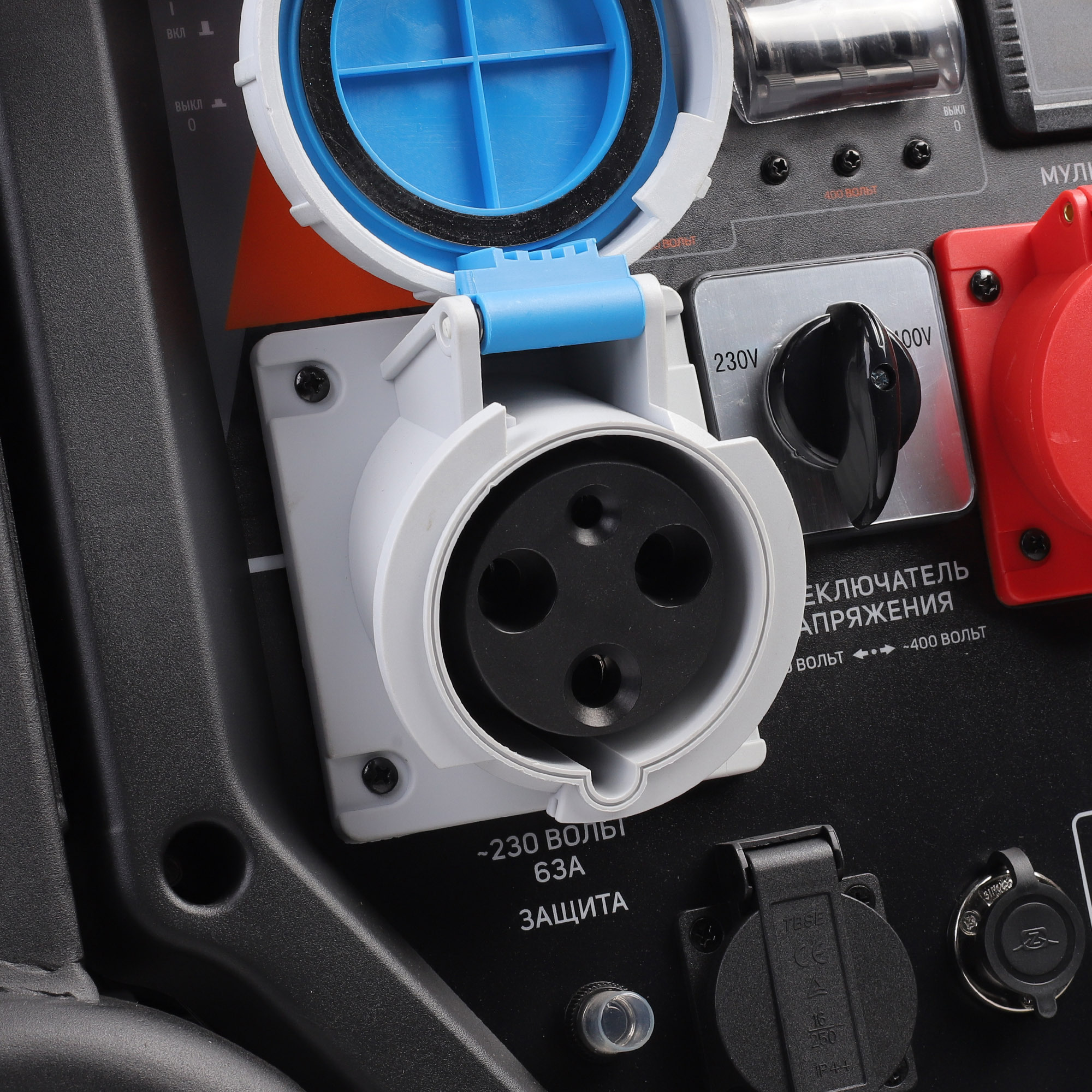 Вилки 230В: 1х16А, 1х63А; 400В: 1х32А;