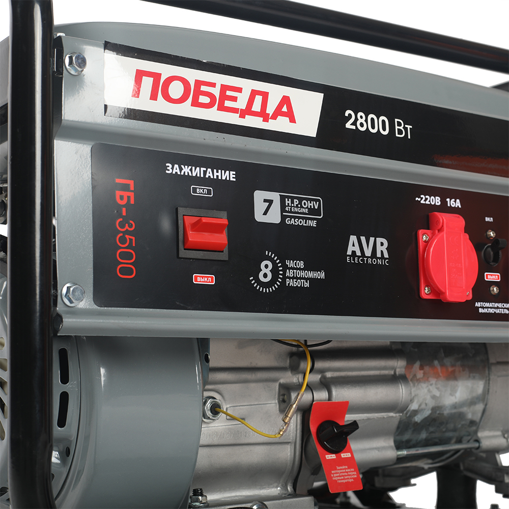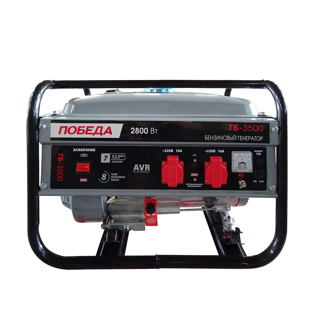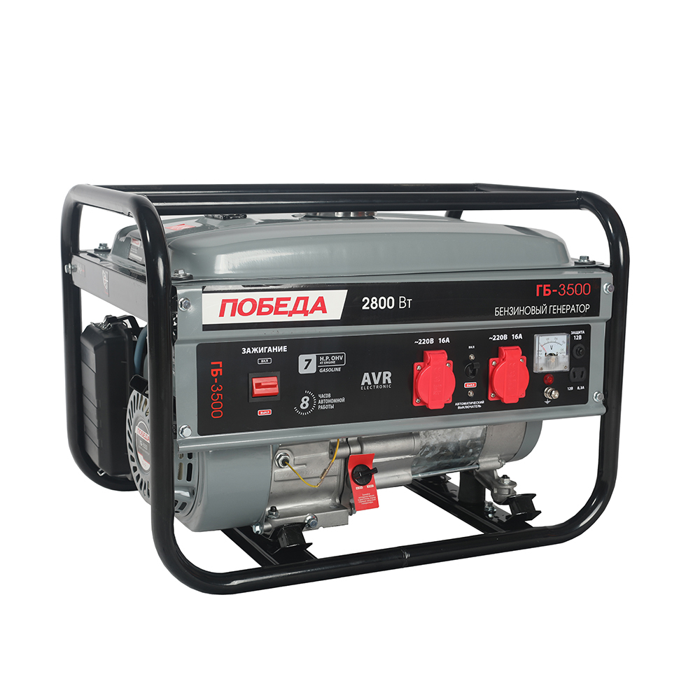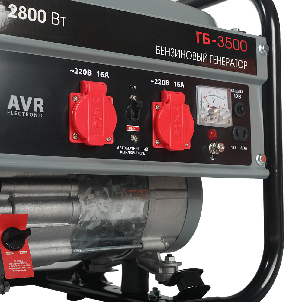 Генератор бензиновый ГБ 3500 прекрасно подходит для использования в бытовых целях вдали от центрального электроснабжения. Изделие имеет компактный корпус и небольшие размеры, что делает его удобным для транспортировки. Аппарат имеет ручной стартер и стрелочный вольтметр. Вид топлива - бензин АИ-92.