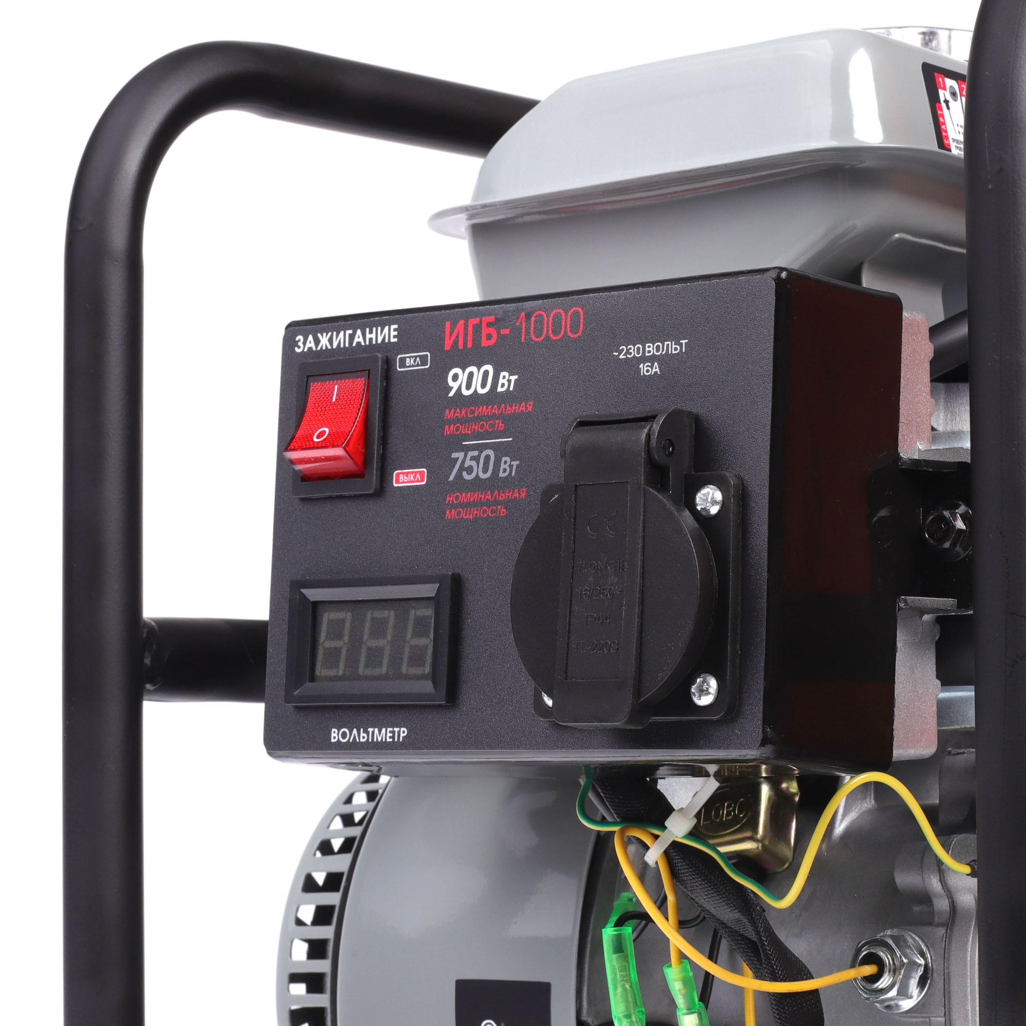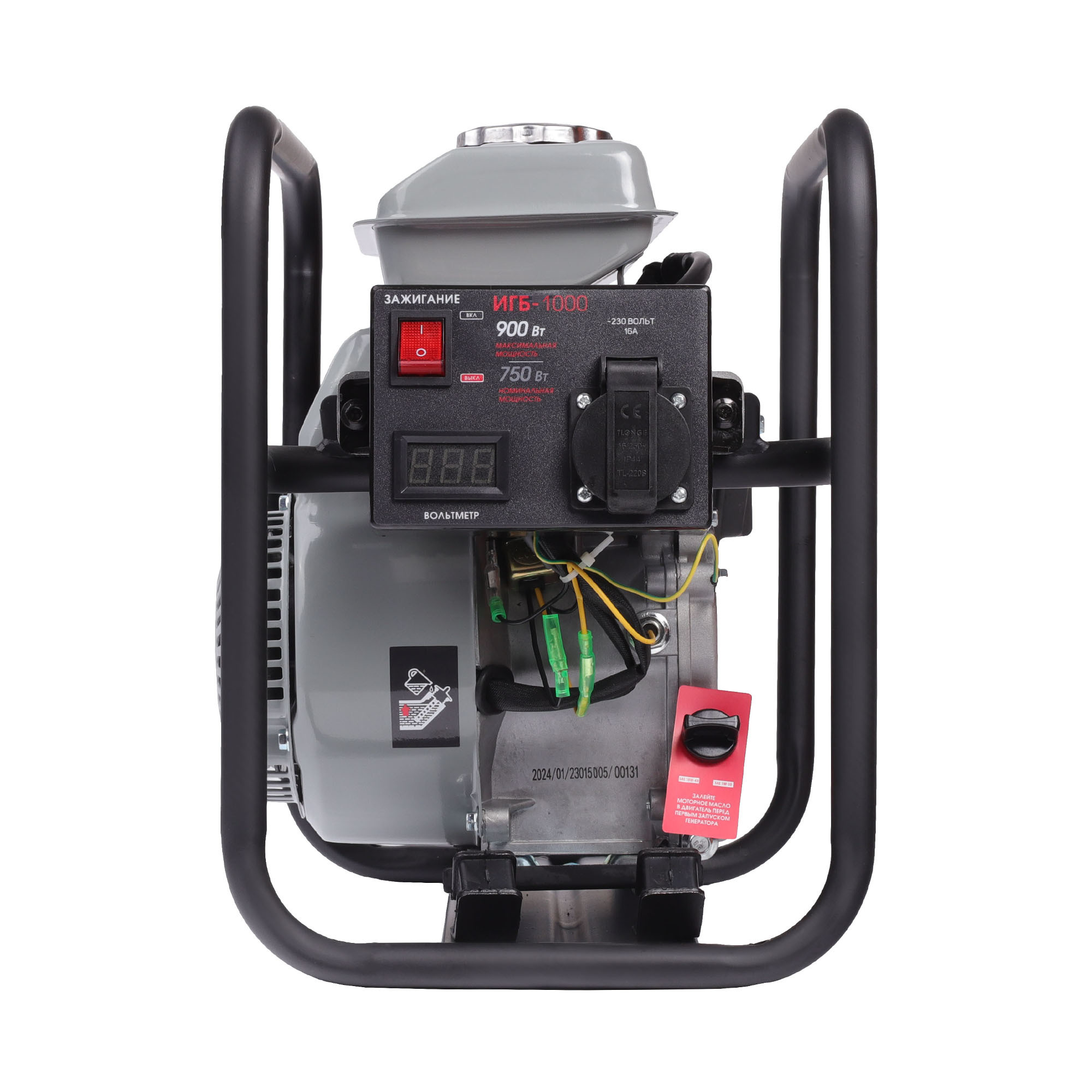 мощность 0.9-0.75 кВт, 98 см.куб, 2.5 л.с, топливный бак 1.4 л, картер 0.4 л, 4-х тактный двигатель, инверторный, розетки 1х230 В, синхронный альтернатор