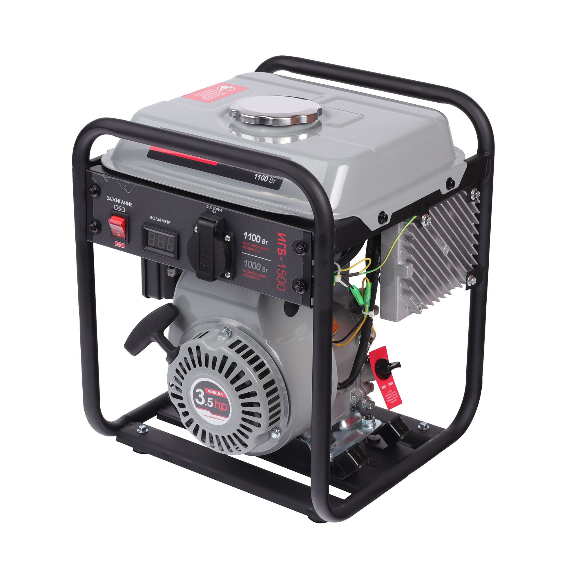 мощность 1.1-1 кВт, 105 см.куб, 3.5 л.с, топливный бак 4.25 л, картер 0.4 л, 4-х тактный двигатель, розетки 1х230 В, синхронный альтернатор, вольтметр, защита от перегрузок, ручка для транспортировки