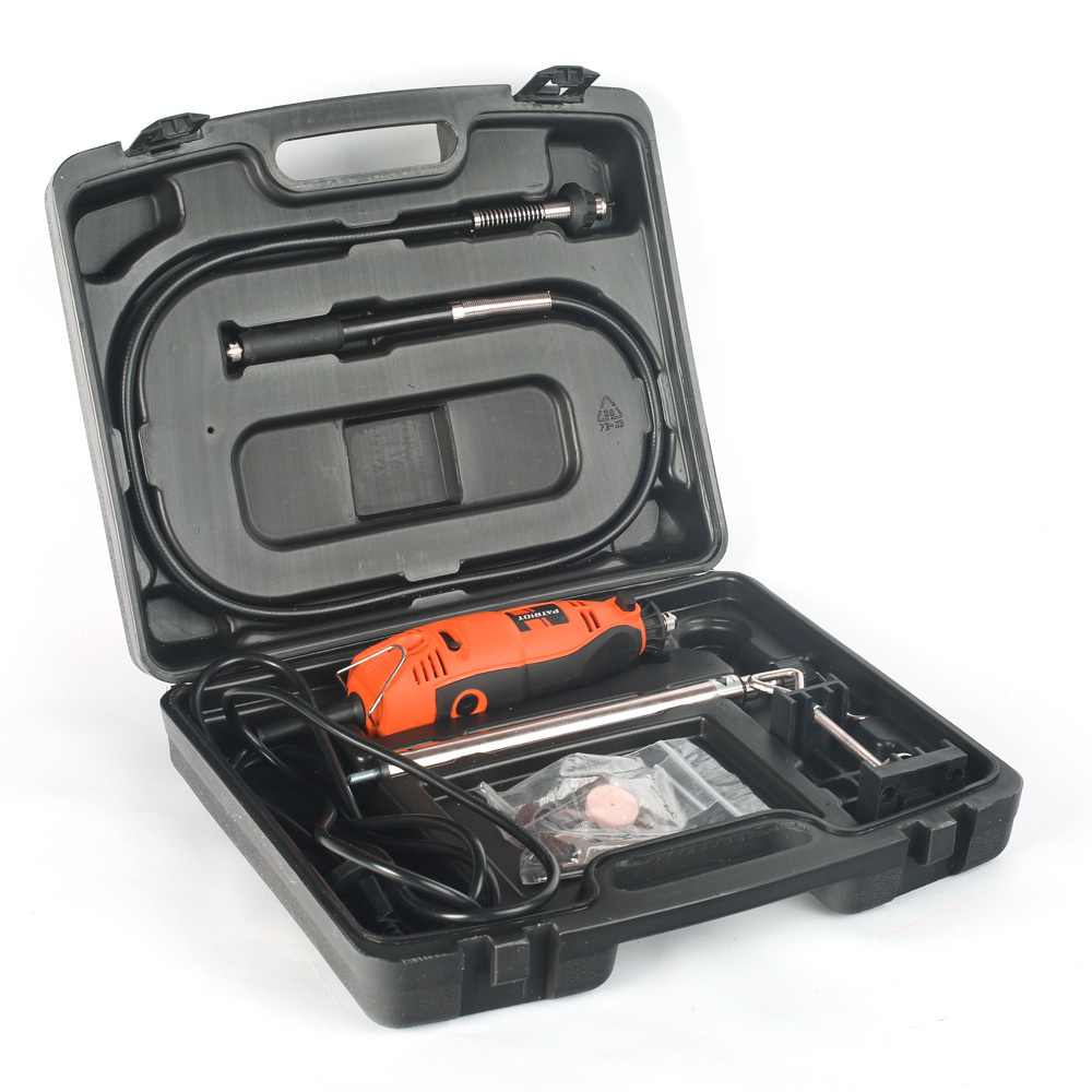 160 Вт, цанги 2.4/3.2 мм, 38000 об/мин, гибкий вал, 40 насадок в комплекте, кейс