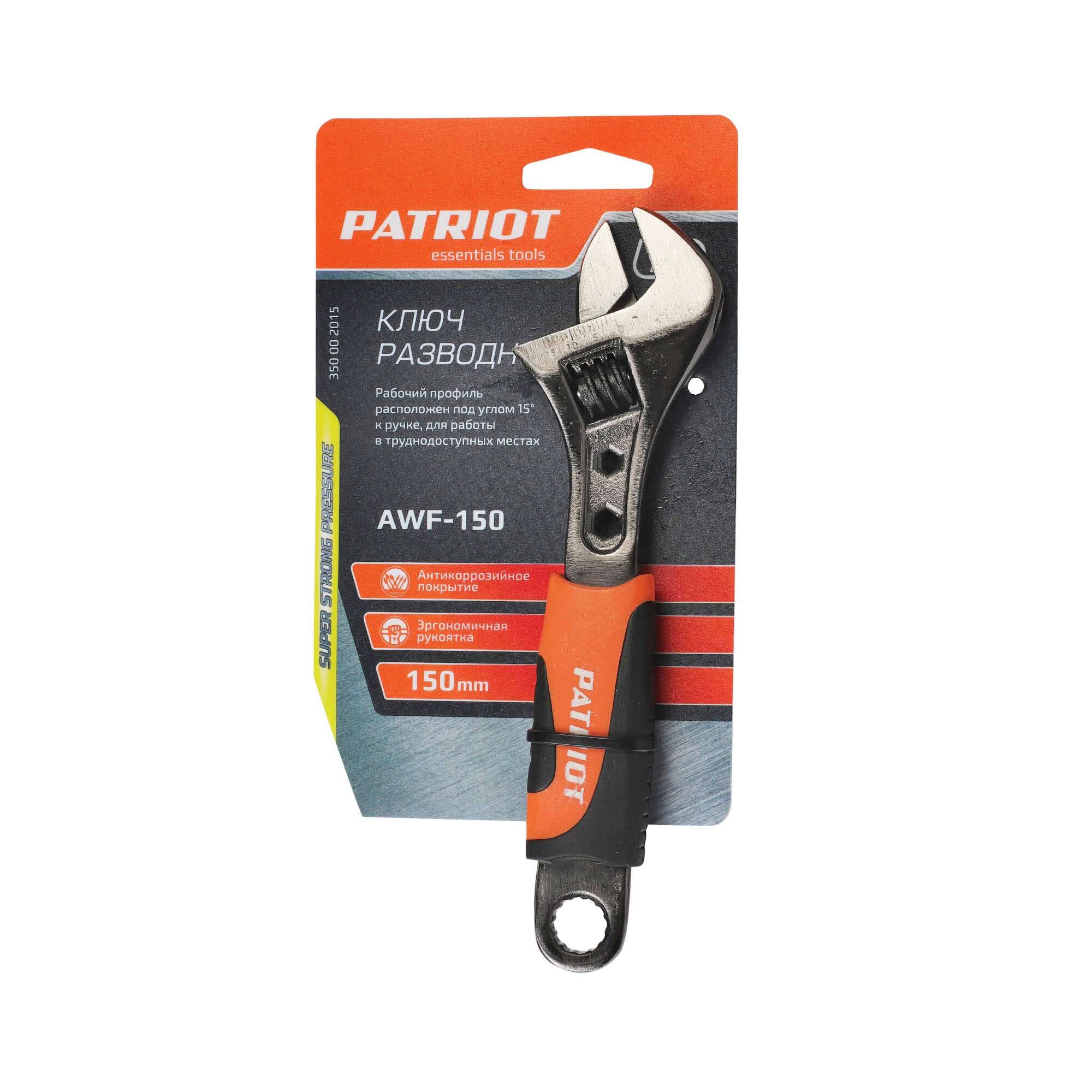 Ключ разводной PATRIOT AWF-150 для работы с крепежами. Комфорт работы дарит резиновая рукоять, предотвращающая скольжение. Ключ выполнен из углеродистой стали с антикоррозийным покрытием, обеспечивающим износостойкость и долговечность эксплуатации.