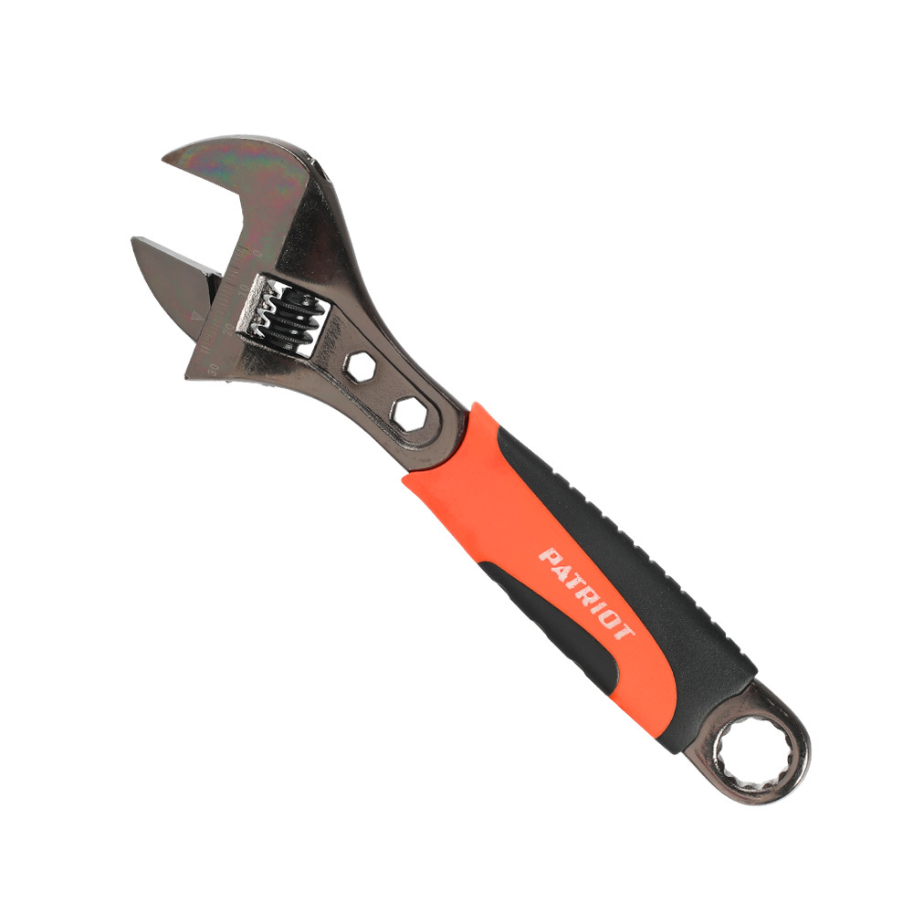Ключ разводной PATRIOT AWF-200 для проведения монтажных работ с крепежами. Материал ключа – закалённая сталь с износостойким никелевым покрытием. Ручка выполнена из резины.