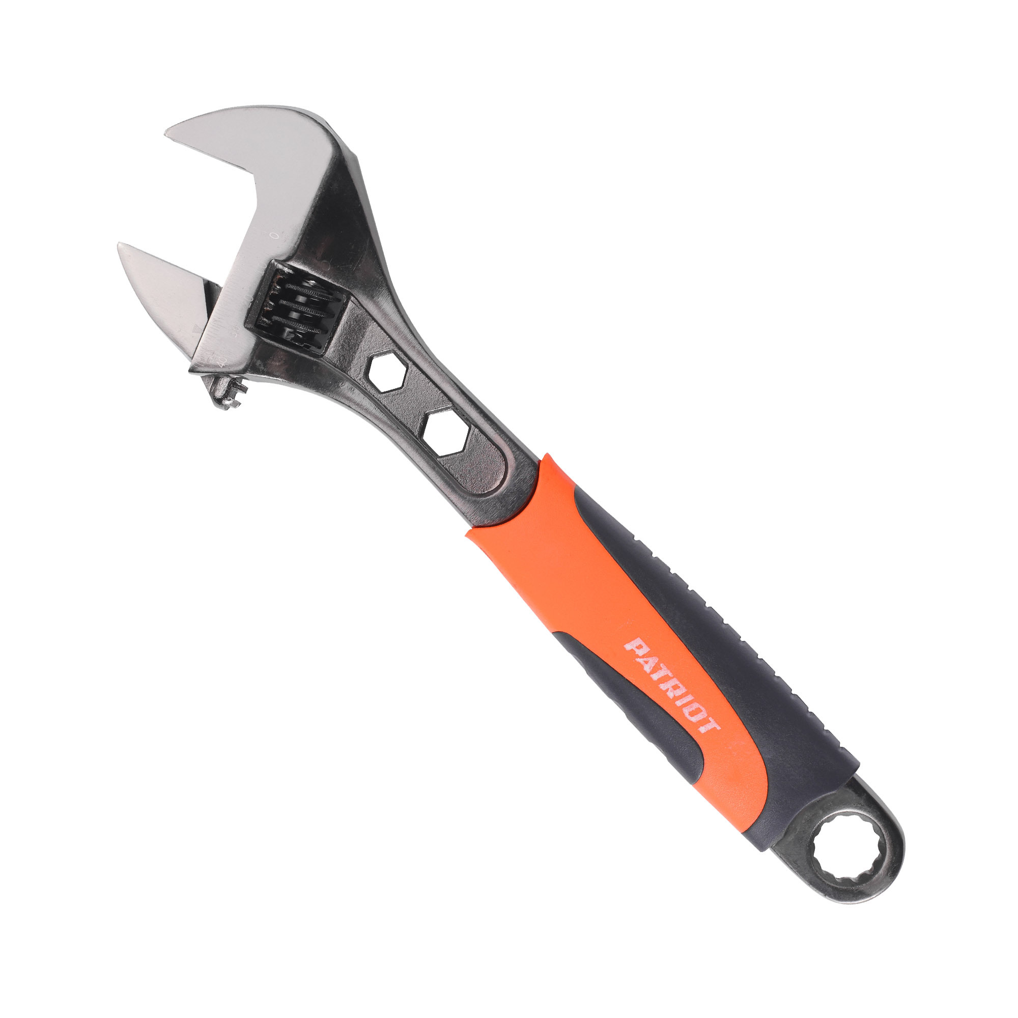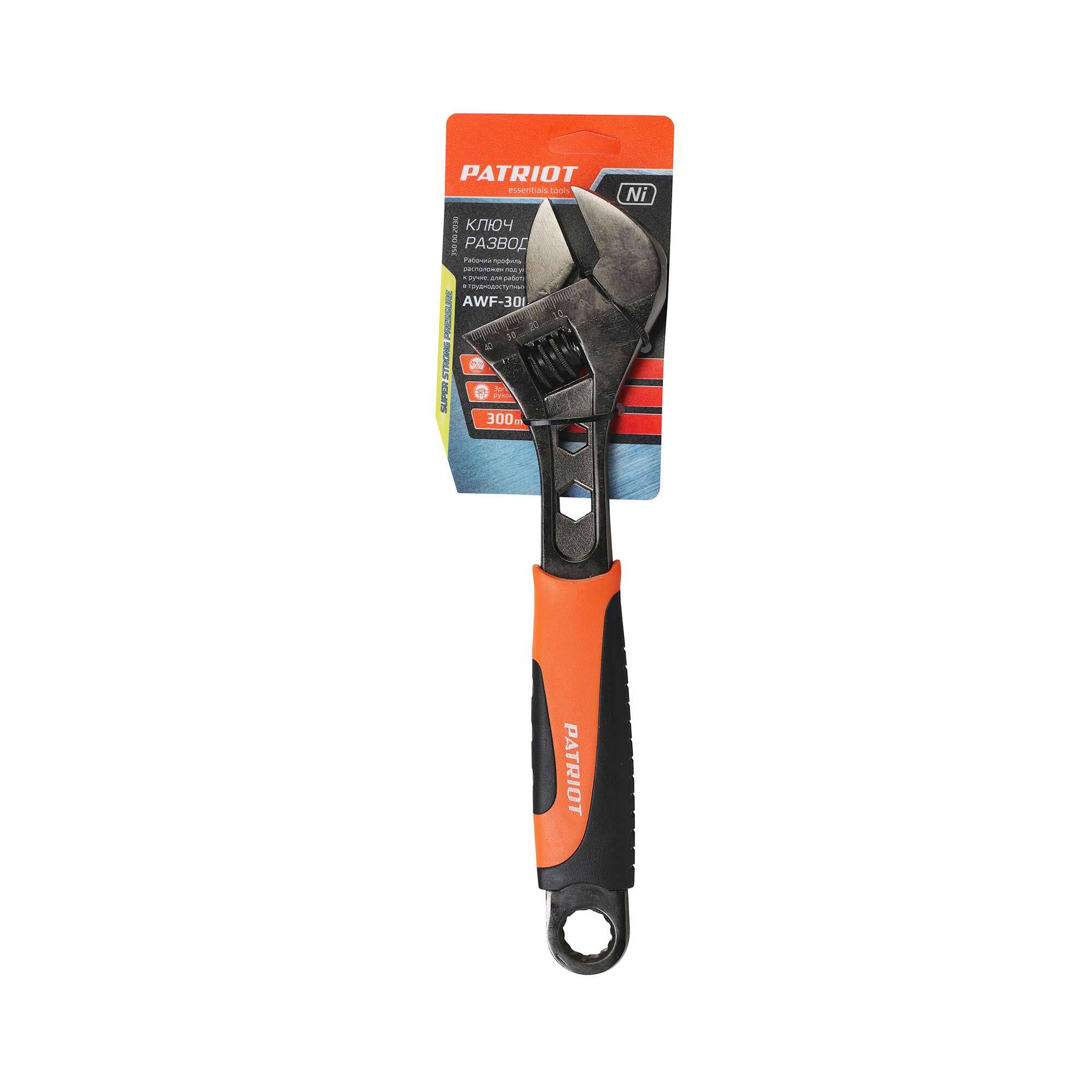 Ключ разводной PATRIOT AWF-300 для работы с крепежами. Инструмент выполнен из углеродистой стали с антикоррозийным покрытием, обеспечивающим износостойкость и долговечность эксплуатации. Прорезиненная ручка защищает пользователя от выскальзывания при работе.