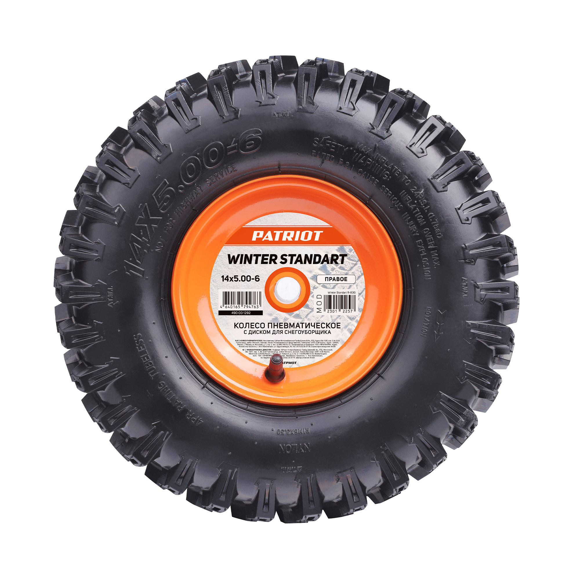Колесо Winter Standart 14X5.00-6 (R) диаметром 14 дюймов , правое , с глубоким протектором способствуют лучшей проходимости машины по снегу, а также препятствуют скольжению.
