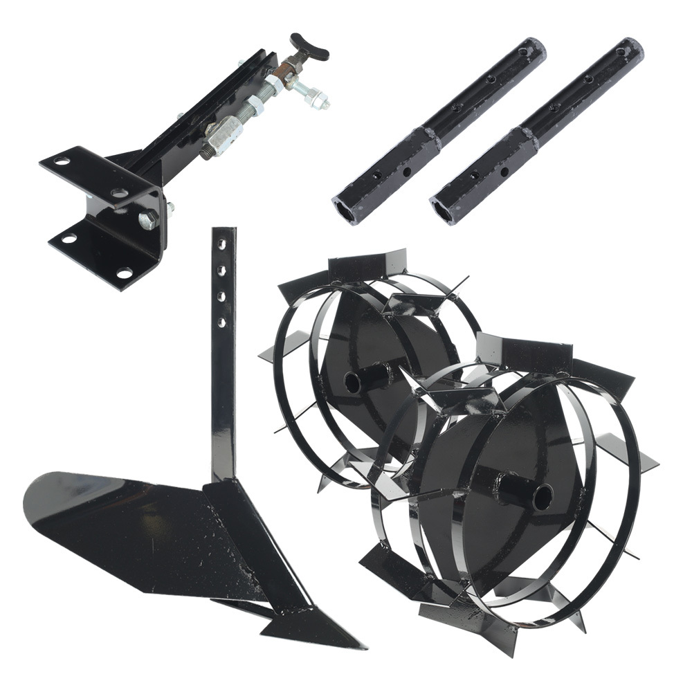 Грунтозацепы: 2 шт.; Окучник для грядок; Удлинители колесных осей: 2 шт.; Сцепка; Упаковка