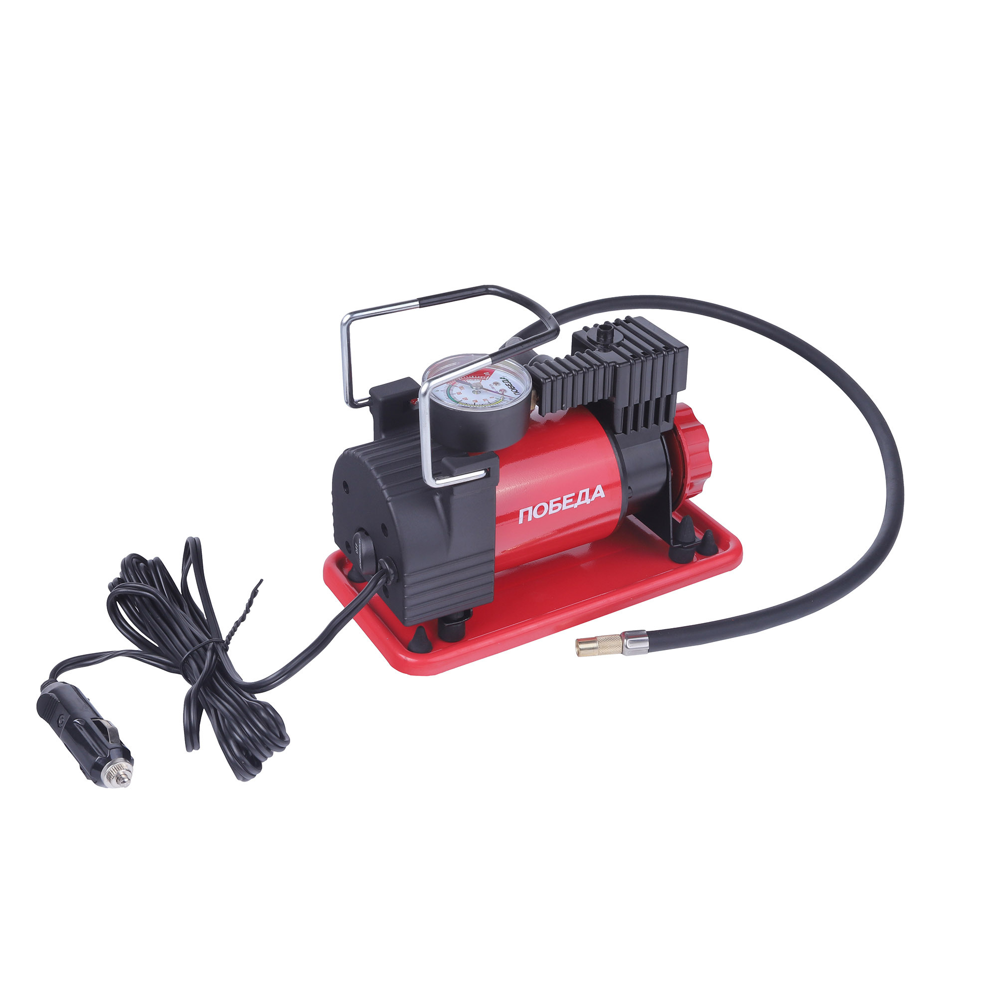 Автомобильный компрессор ПОБЕДА AK 45 предназначен для накачивания колёс легковых автомобилей, кроссоверов, внедорожников, а также лёгкого коммерческого транспорта. Металлическая опора обеспечивает устойчивость при работе, защищает устройство от ударов и других повреждений механического типа. Установлен воздушный фильтр, для предотвращения попадания пыли в поршневую группу, что увеличивает ресурс работы компрессора. Поставляется в транспортировочной сумке. Оснащен манометром.