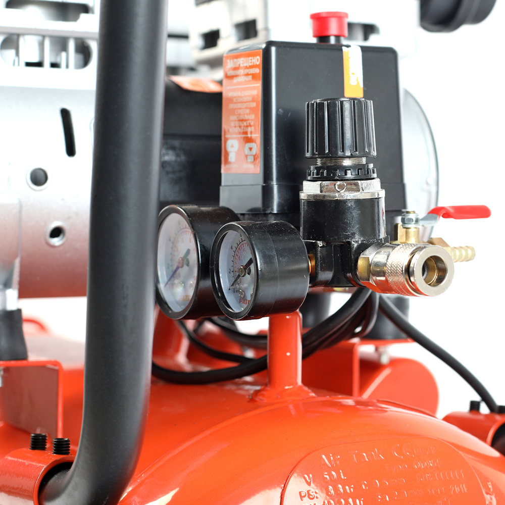 • Регулировка и контроль давления в ресивере и на выходе при помощи двух манометров