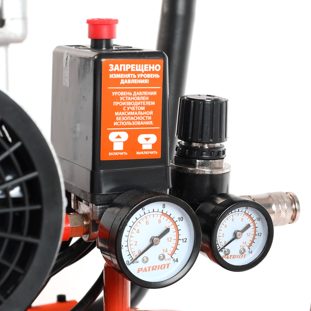 • Прессостат контролирует включение и выключение подкачки воздуха, поддерживая давление в ресивере в заданном диапазоне