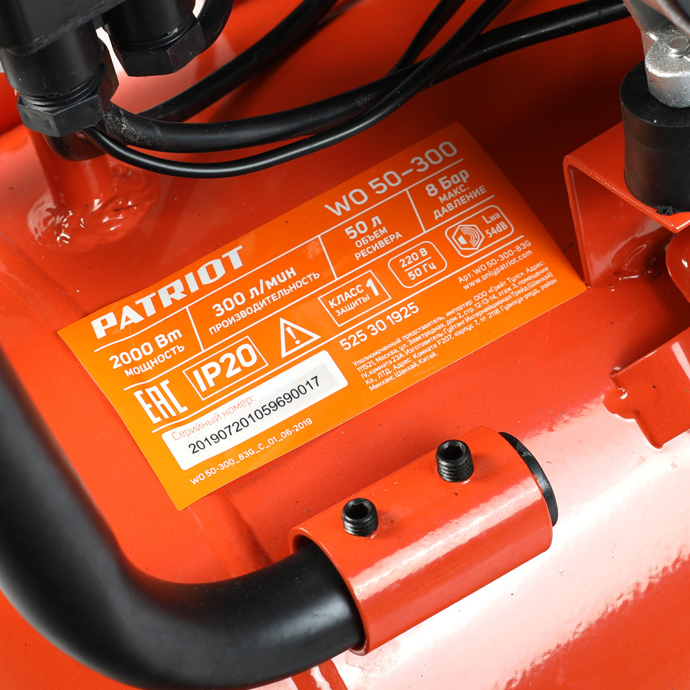 2 кВт, 8 бар, 50 л, 300 л/мин, прямой, 1380 об/мин, быстросъемный 1/4 quot;+елочка с вентилем, безмасляный