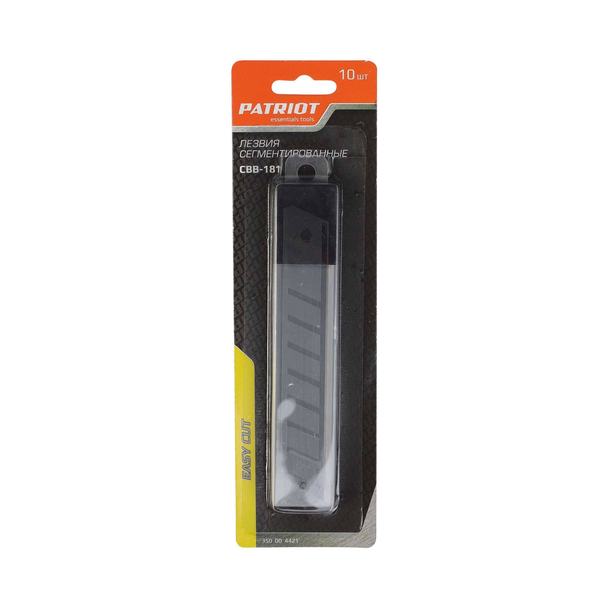 Набор из десяти сменных лезвий черного цвета для ножей PATRIOT CKA-182 и PATRIOT CKP-183. Лезвия выполнены из закалённой стали с защищающей от коррозии вороненым покрытием. Толщина одного лезвия – 0,5 мм, ширина – 18 мм. Для хранения в комплекте идёт пластиковый футляр.