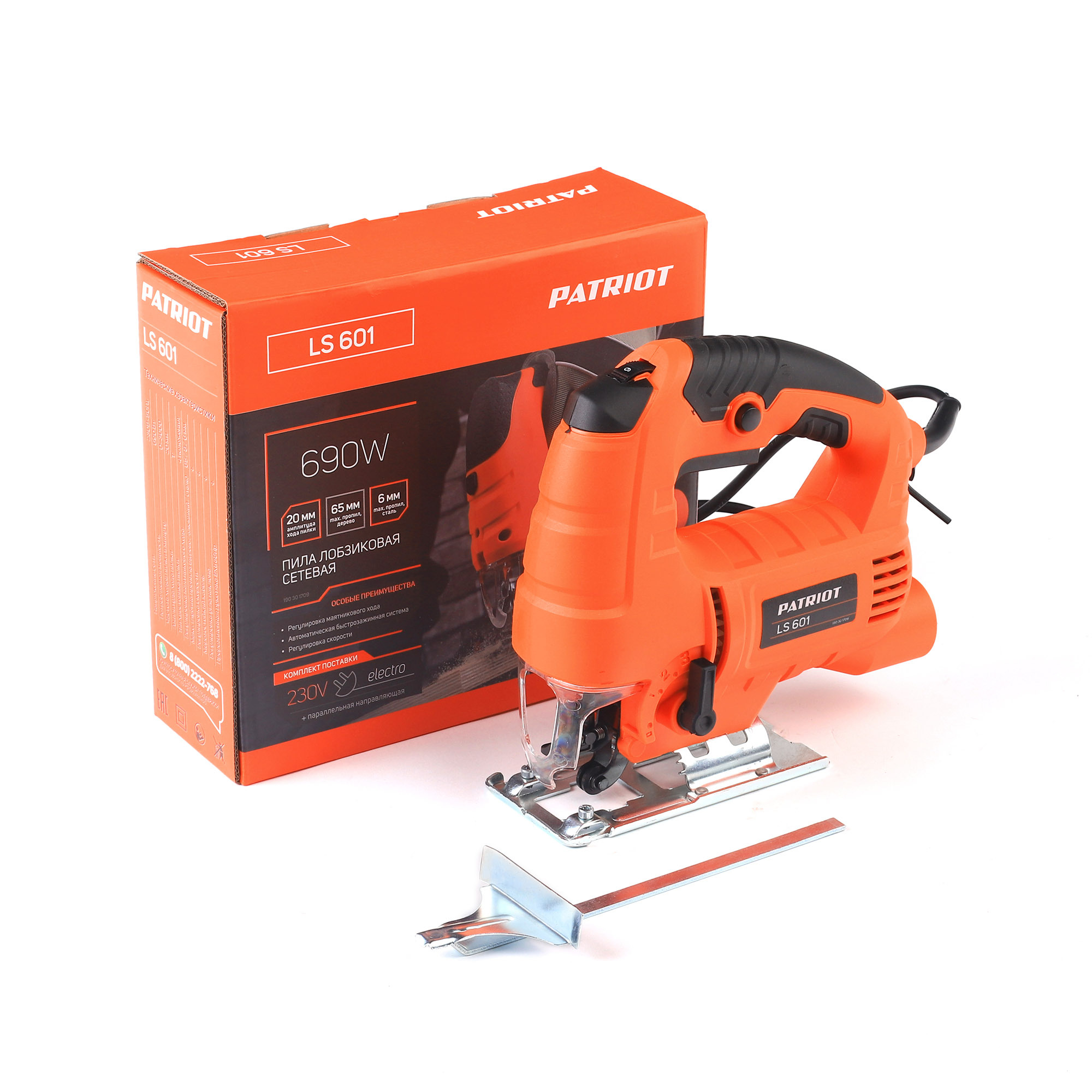 Лобзик Patriot LS 601 мощность 690 Вт, макс толщина дерева 65 мм, 4 поз., маятниковый ход, регулировка скорости