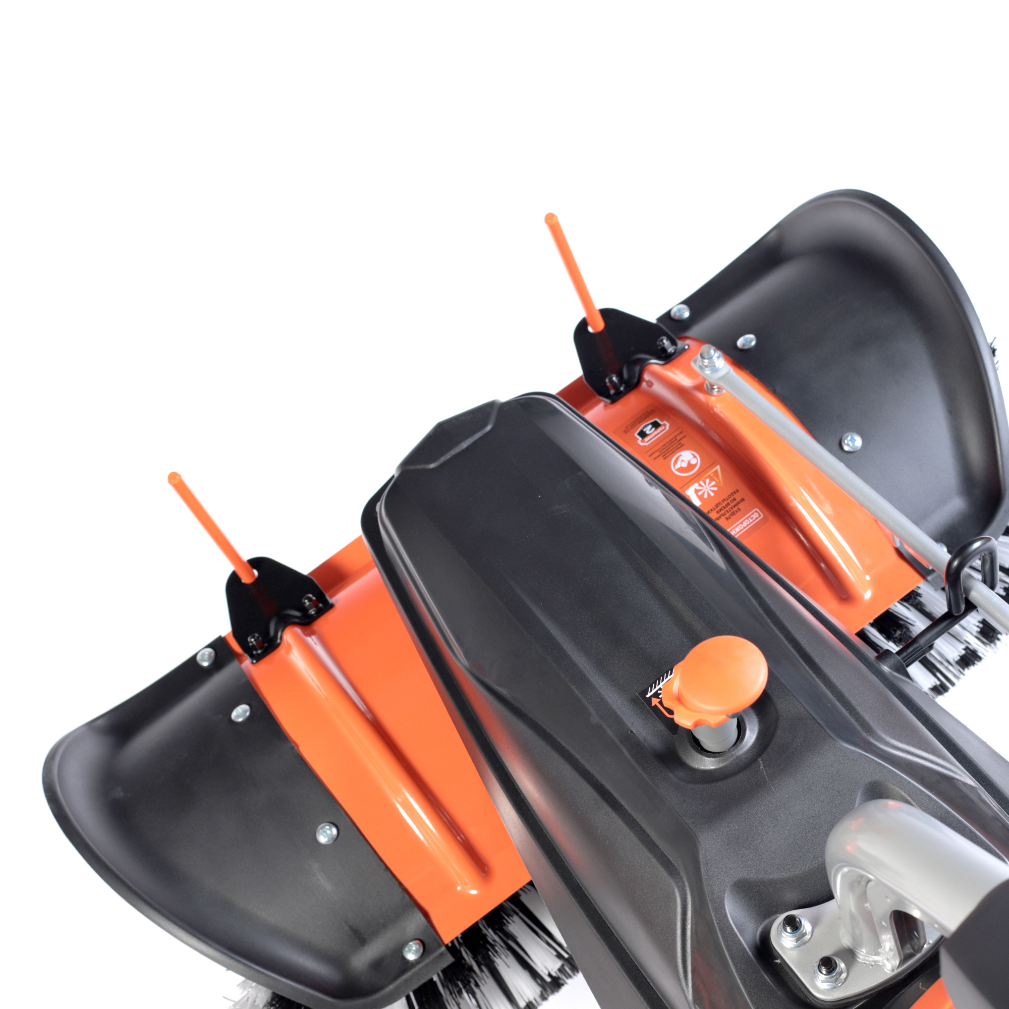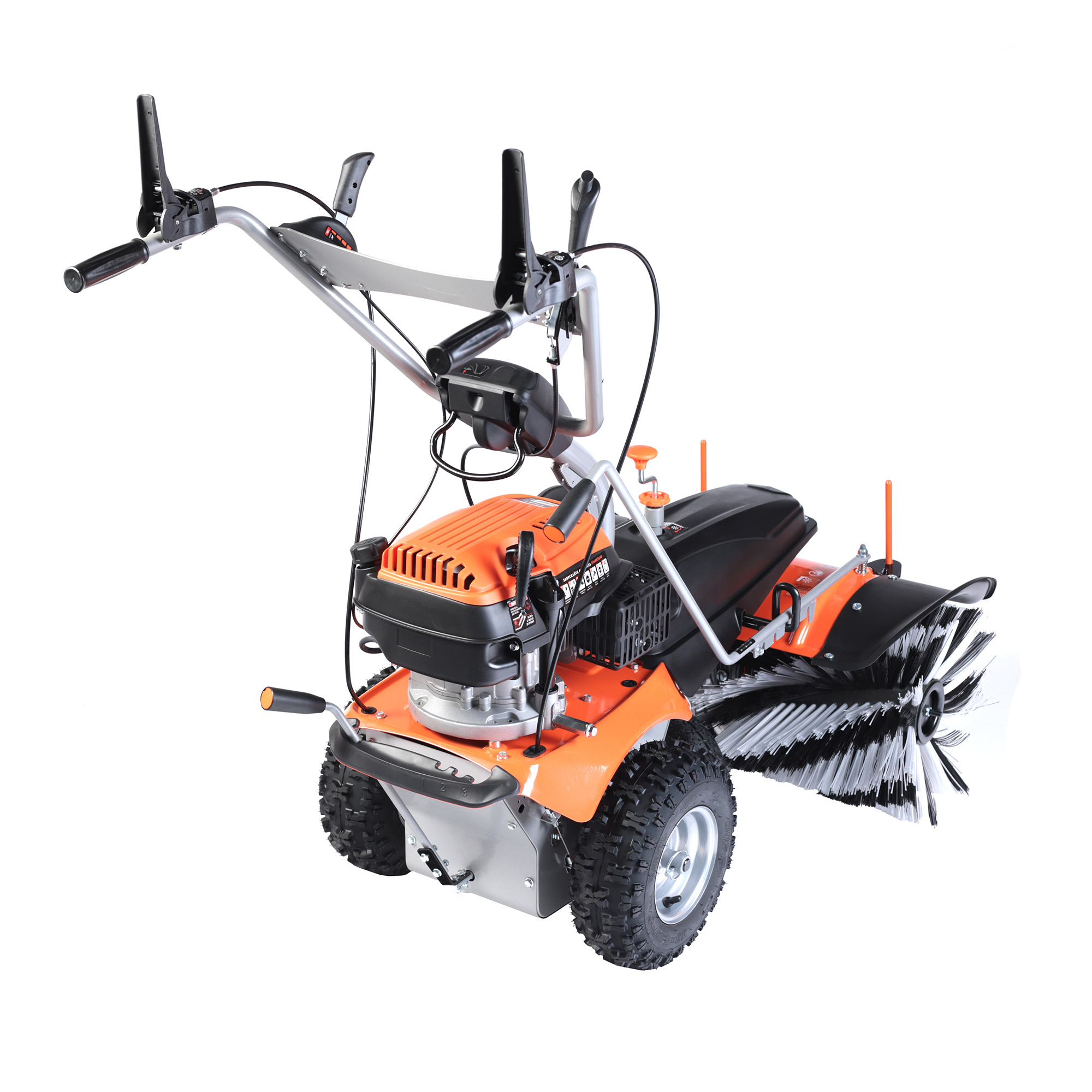 Подметальная машина с шириной щетки 80 см применяется для уборки территорий на садовом участке в любое время года: осенью для уборки листвы, зимой для уборки свежевыпавшего снега. Особенно эффективно использовать для уборки тротуарной плитки.